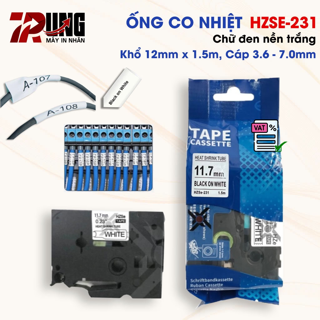 Nhãn In Ống Co Nhiệt HZSe-231, Khổ 12mm X 1,5m, Cáp 3.6-7.0mm, Màu Trắng