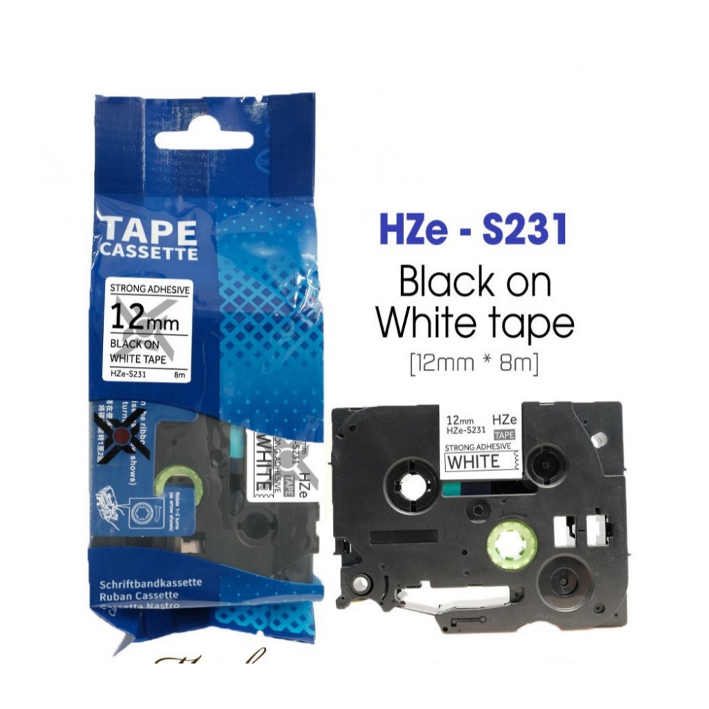 Nhãn In HZe-S231 (Chữ Đen Trên Nền Trắng, khổ 12mm X 8M) - Tương Thích Nhãn Brother TZe-S231