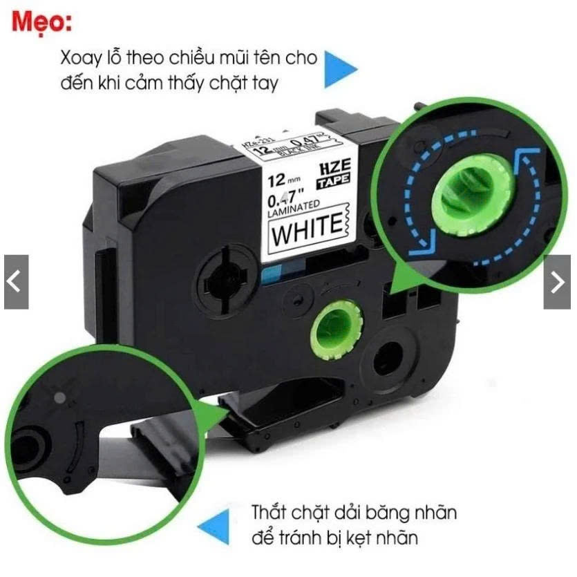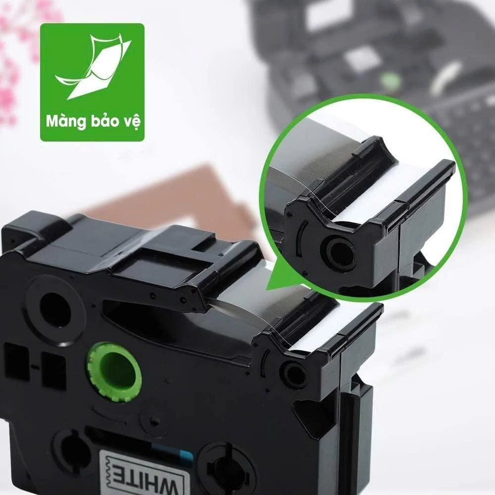 Nhãn in HZe chính hãng 6mm, 9mm,12mm,18mm, 24mm, 36mm dài 8m dùng cho máy in nhãn Brother & AIMO