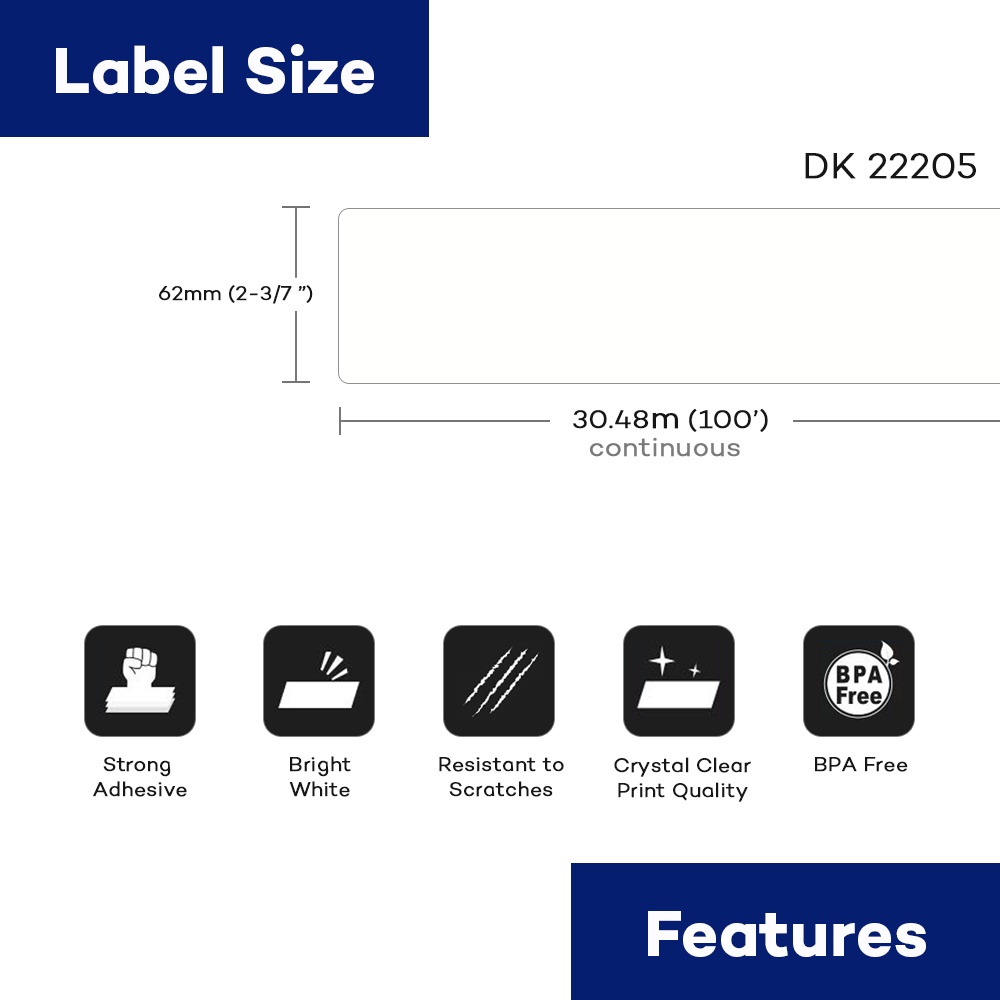 1 Cuộn Nhãn Dán Nhiệt dk-22205 dk-2223 dk-2225 dk-22243 62mm 29mm 38Cm 102