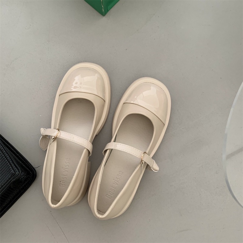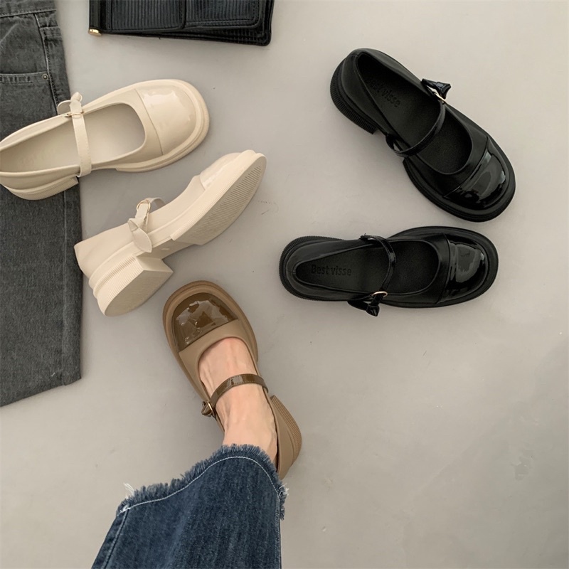(Có Sẵn Đen/Trắng be) Giày búp bê 2022 mũi tròn đế cao 2p quai cài da đẹp giày marry jane phong cách basic chụp kỷ yếu