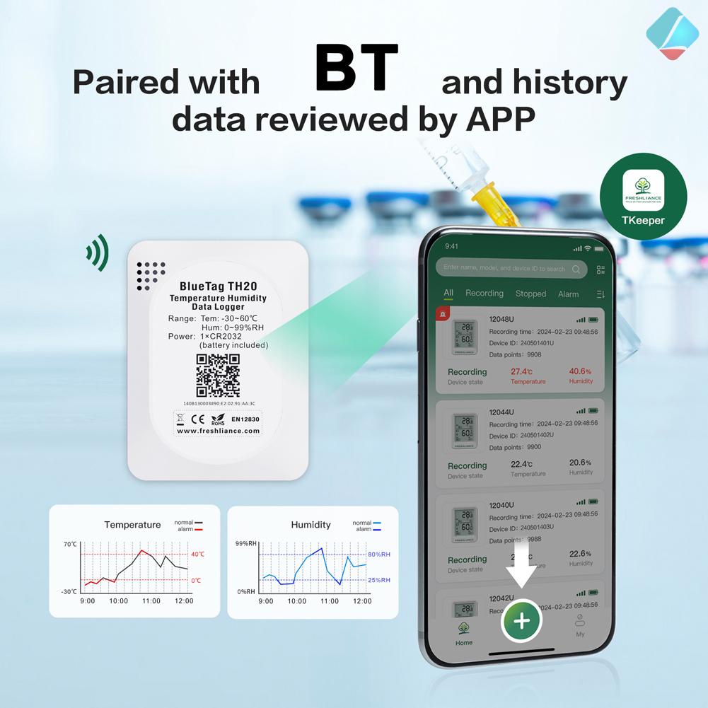 Bt Nhiệt Độ Và Độ Ẩm Máy Ghi Trái Cây Lạnh Lưu Trữ Coldchain Vận Chuyển Nhiệt Độ Logger Điện Thoại Di Động Điều Khiển Ứng Dụng Lưu Trữ Dữ Liệu Dung Tích Lớn Với Data Exp kipo2.28