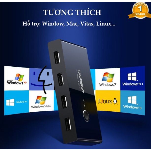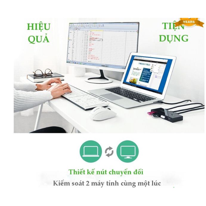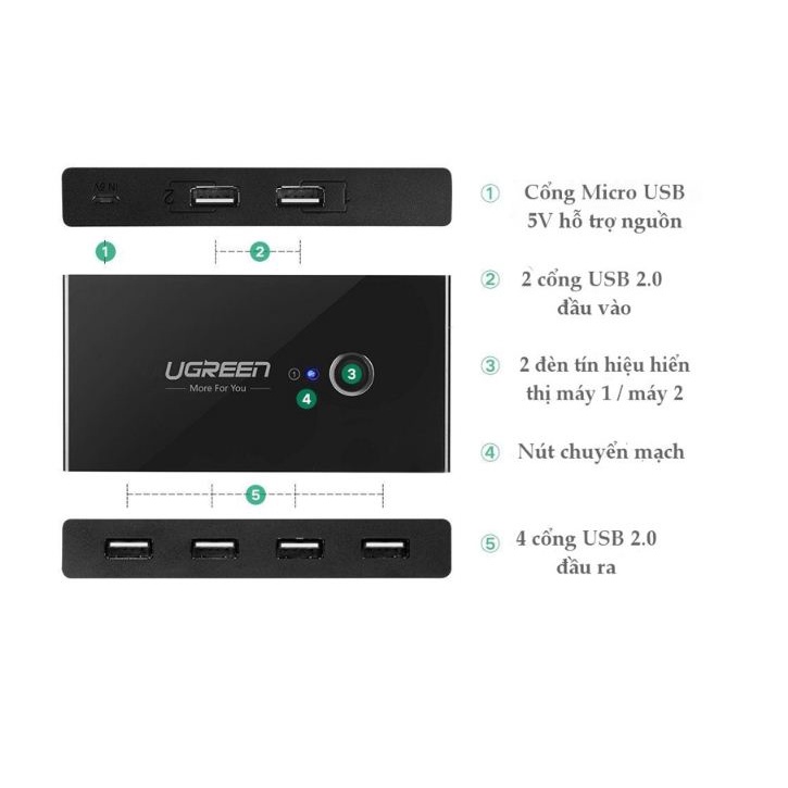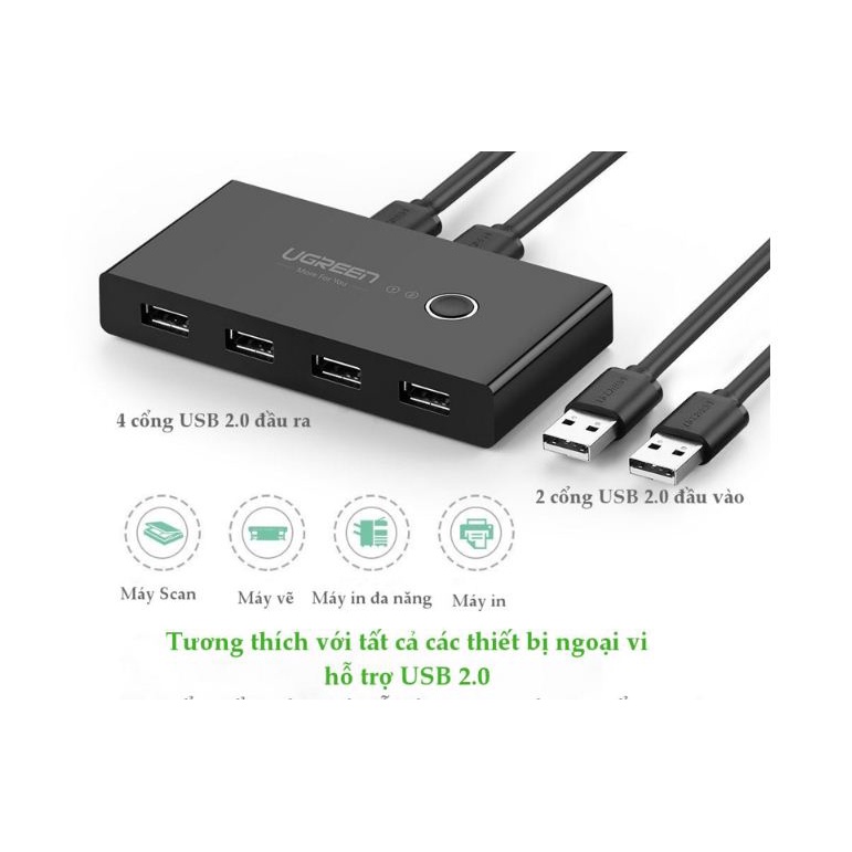Thiết bị chia sẻ 4 cổng USB 2.0 cho 2 máy tính Ugreen 30767