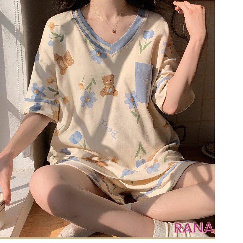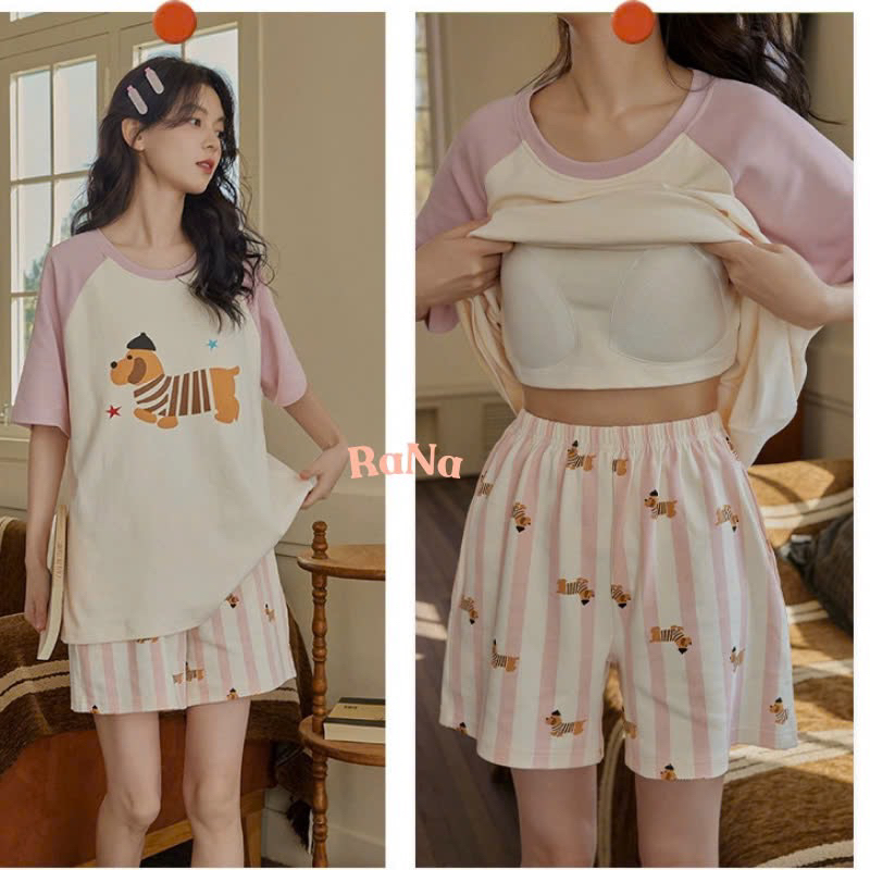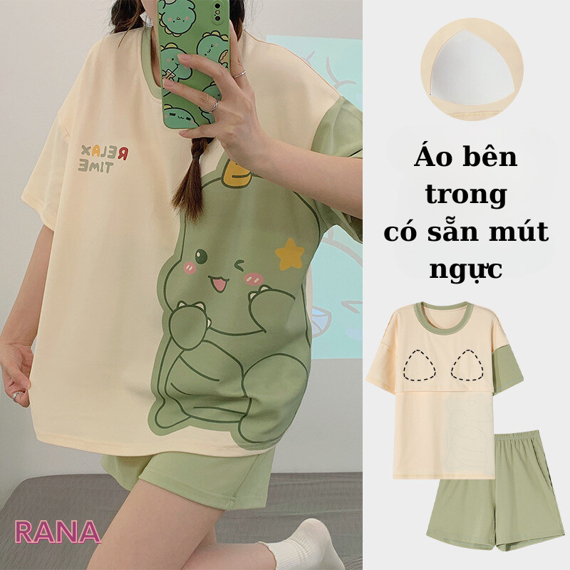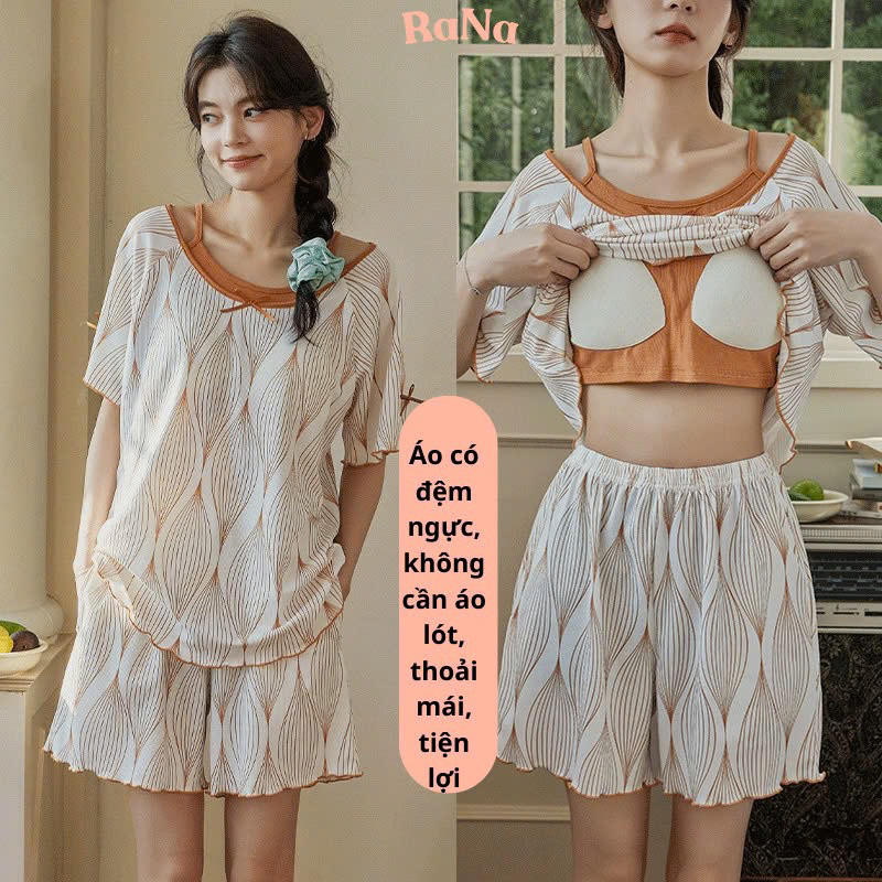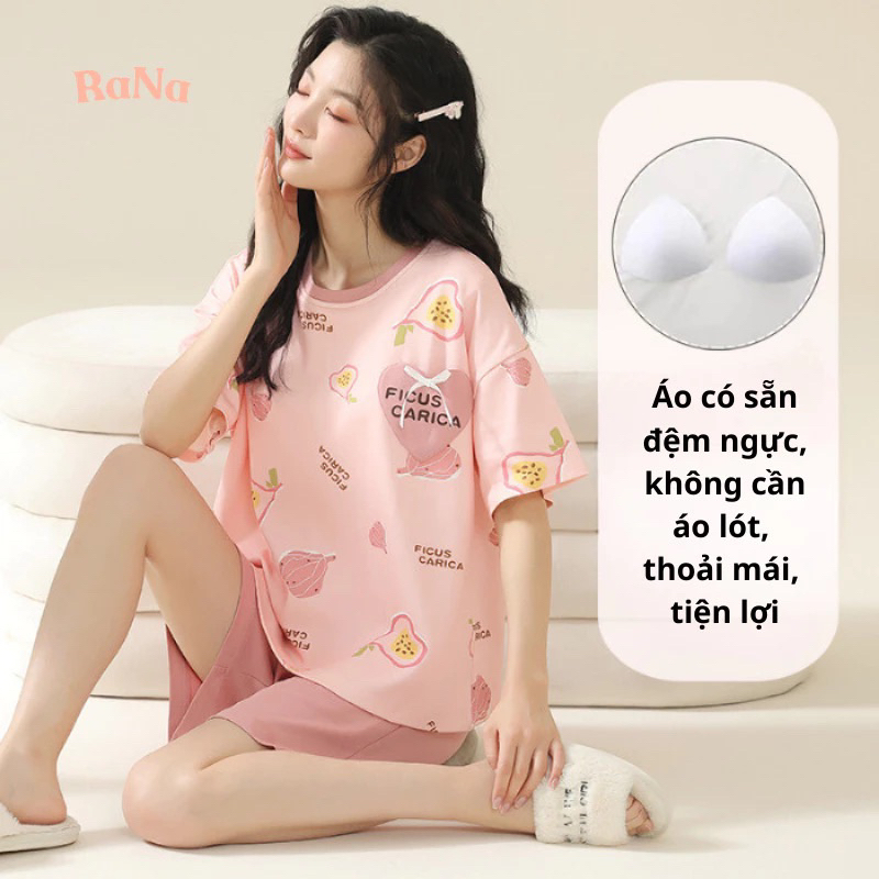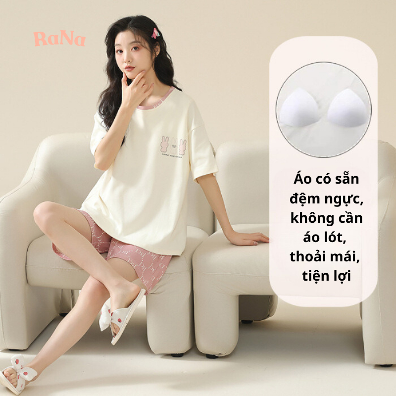 Bộ quần đùi áo tay lỡ cổ tròn cho nữ mặc mùa hè áo có sẵn đệm ngực RaNa