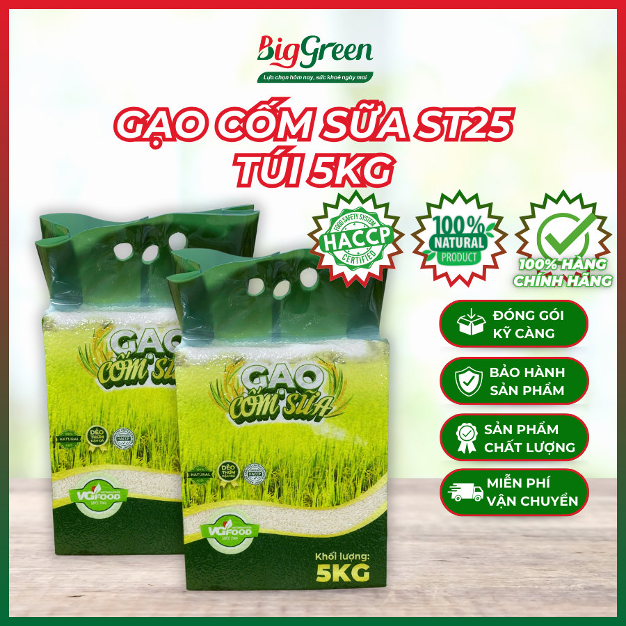 Gạo cốm sữa ST25 túi 5kg - VGreen