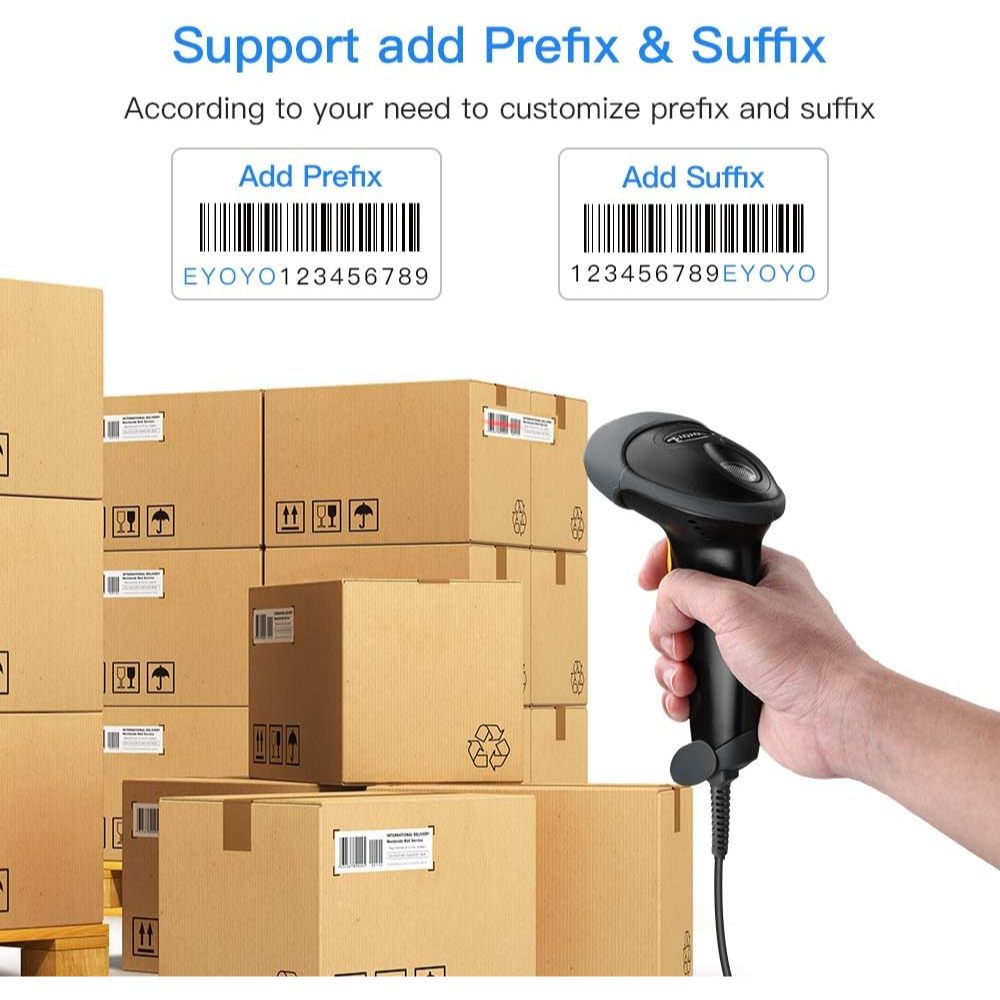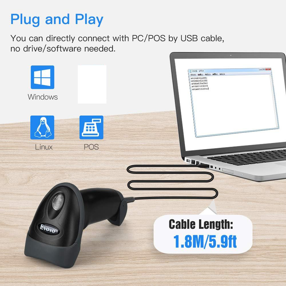Máy quét mã vạch USB 1D 2D cầm tay Eyoyo, Máy quét mã QR tự động có dây PDF417 Đầu đọc mã vạch ma trận dữ liệu Cáp USB dài