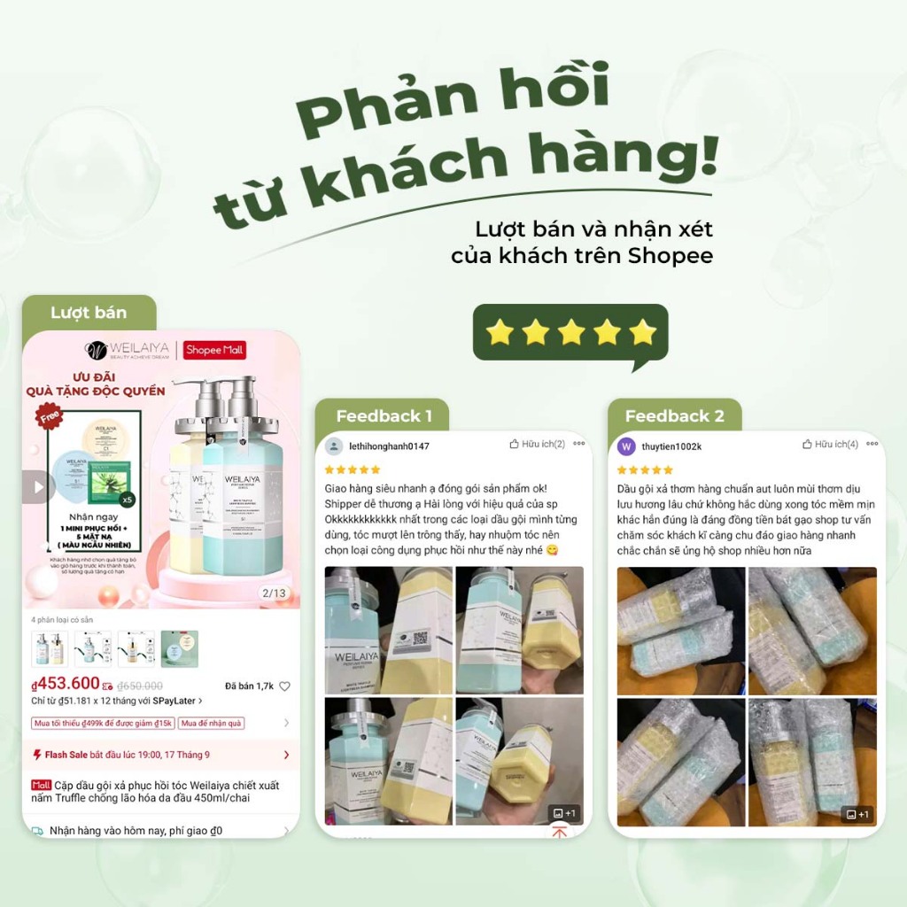 [Top 1 Bán Chạy] Cặp dầu gội xả phục hồi tóc Weilaiya chiết xuất nấm Truffle chống lão hóa da đầu 450ml/chai