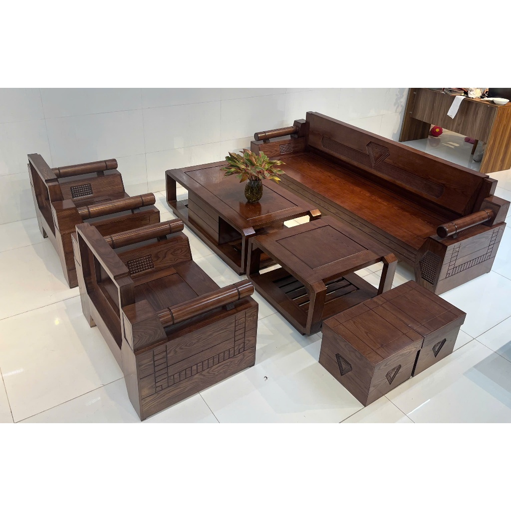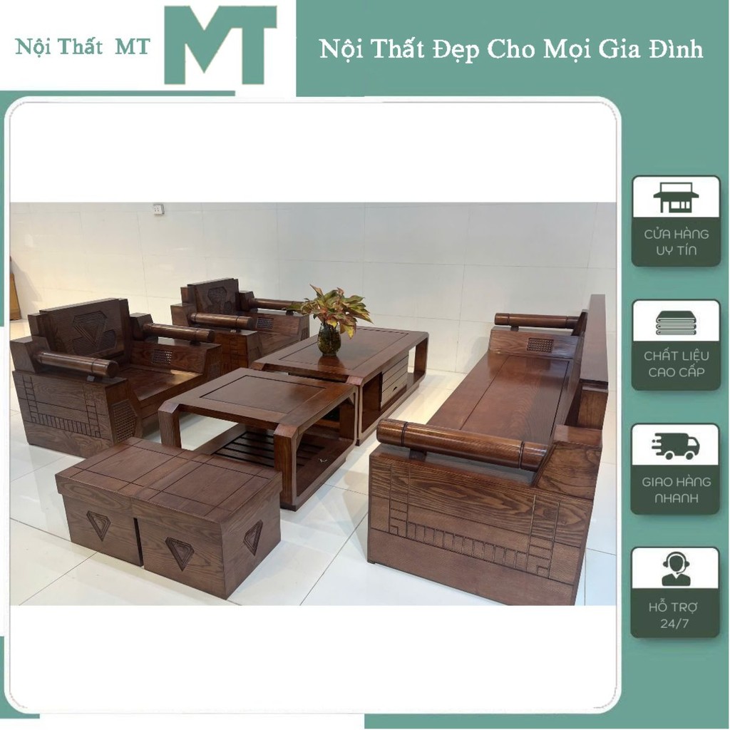 Bộ sofa gỗ sồi nga phòng khách văng đối bền đẹp, giá gốc tại xưởng