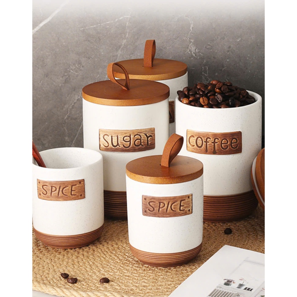 [BLGV001] Bình gốm (CERAMIC 800ml ) đựng các loại hạt , gia vị , nguyên liệu . Phong cách Vintage . Chống ẩm chống bụi .