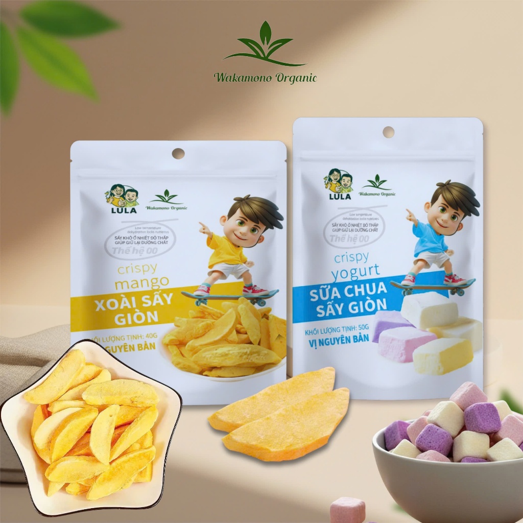 Xoài sấy giòn LULA 40gam/gói công nghệ sấy thăng hoa giữ nguyên dưỡng chất, chua chua ngọt ngọt