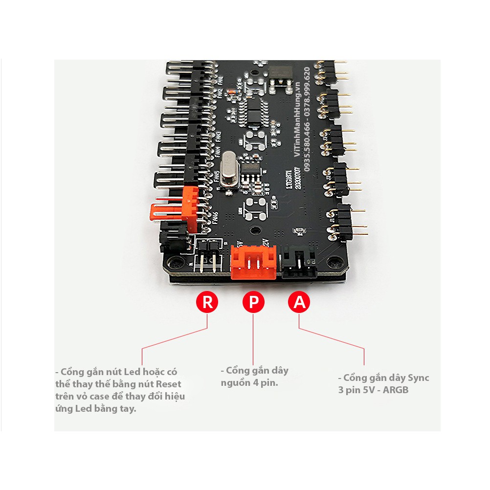 Hub CoolMoon P-ARGB, 6 cổng 4 pin PWM + 7 cổng Led 3 pin 5V-ARGB, đồng bộ Led Mainboard.