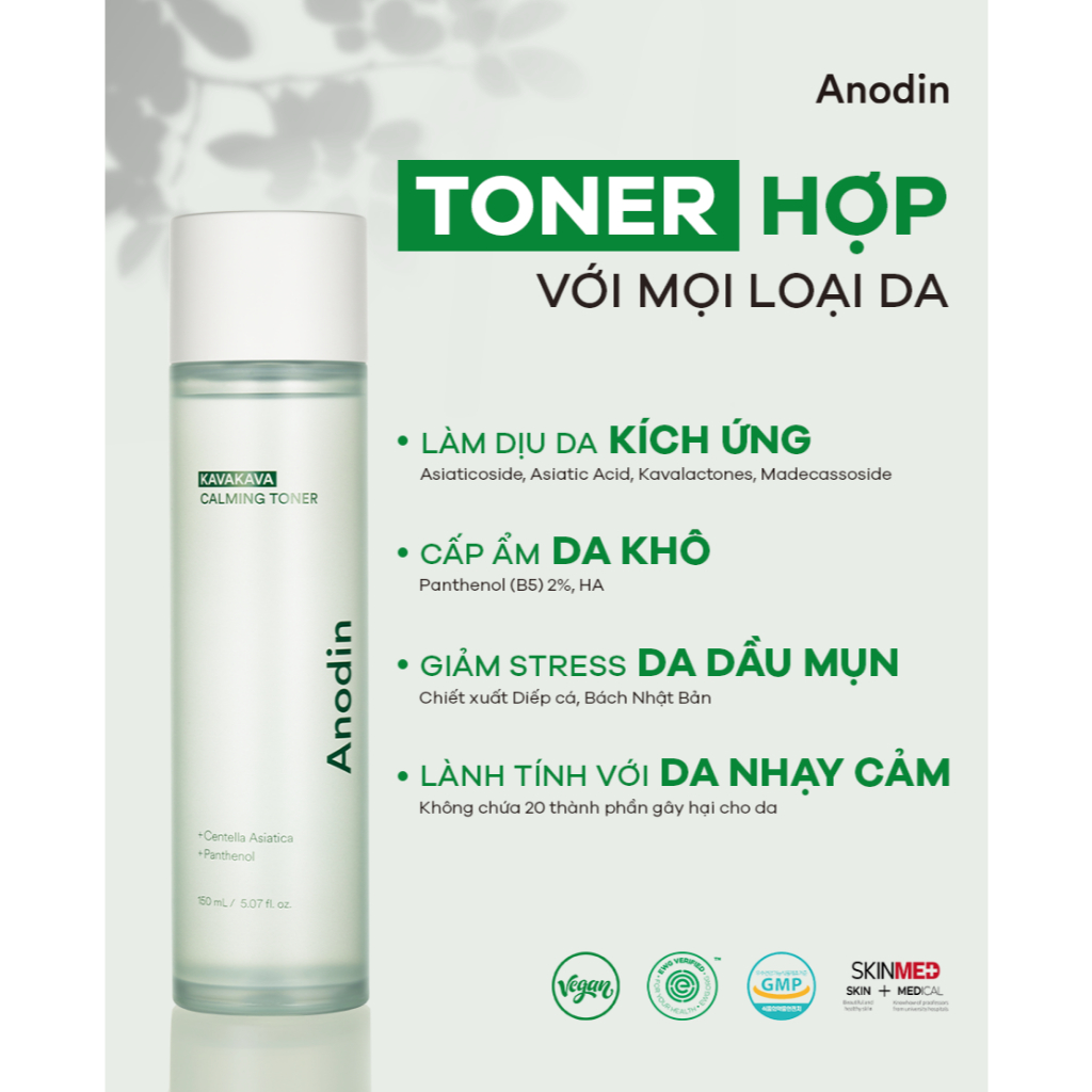 Nước hoa hồng Anodin KavaKava Caliming Toner 150ml