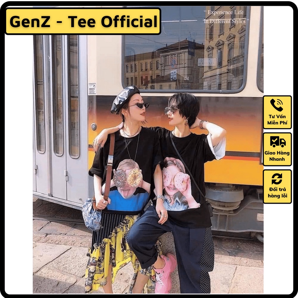 Áo Thun ADLV-Mẫu 20- Bé Cầm Donut Vàng, Áo ADLV Form Rộng Nam Nữ
