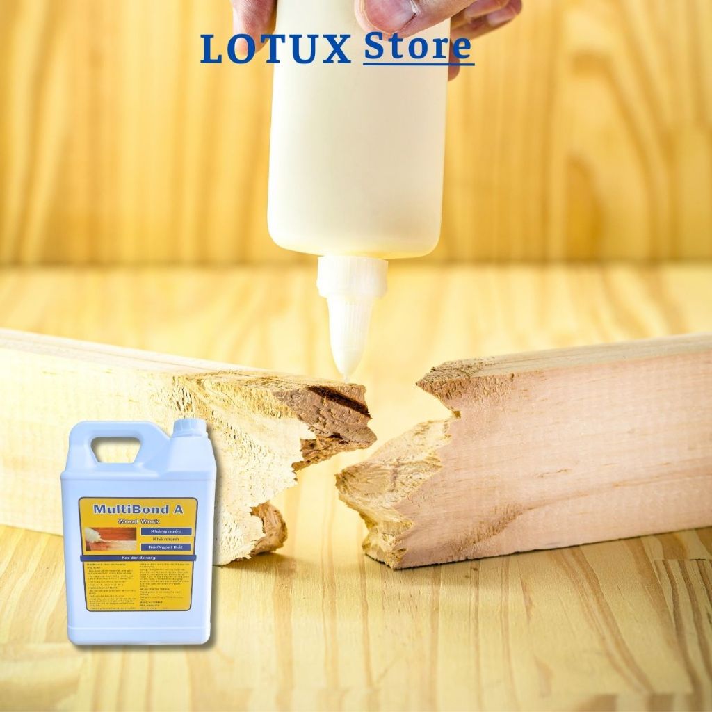 Keo sữa dán gỗ, keo dán đa năng nội ngoại thất, mau khô, kháng nước, không mùi, lành tính.Lotux, 5kg