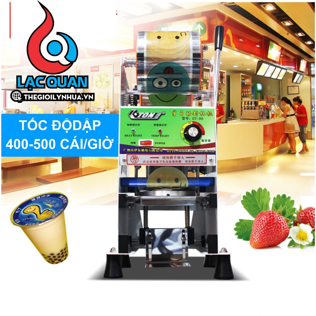 Máy ép ly nhựa, máy dập cốc, máy tự động cuộn màng ETON B9 dập được cả ly nhựa PP và ly giấy từ 300 đến 700ml