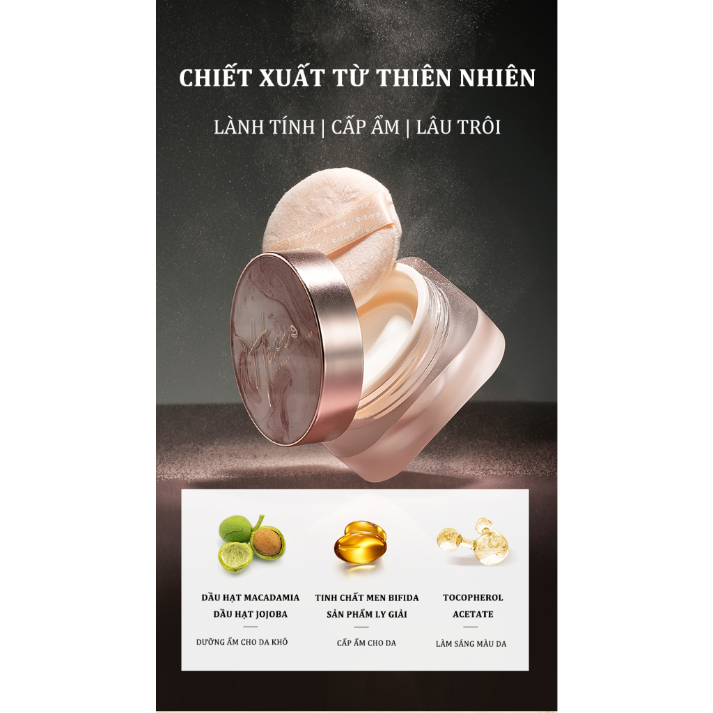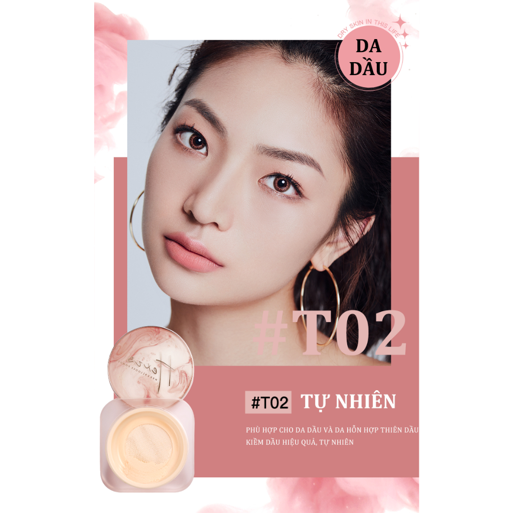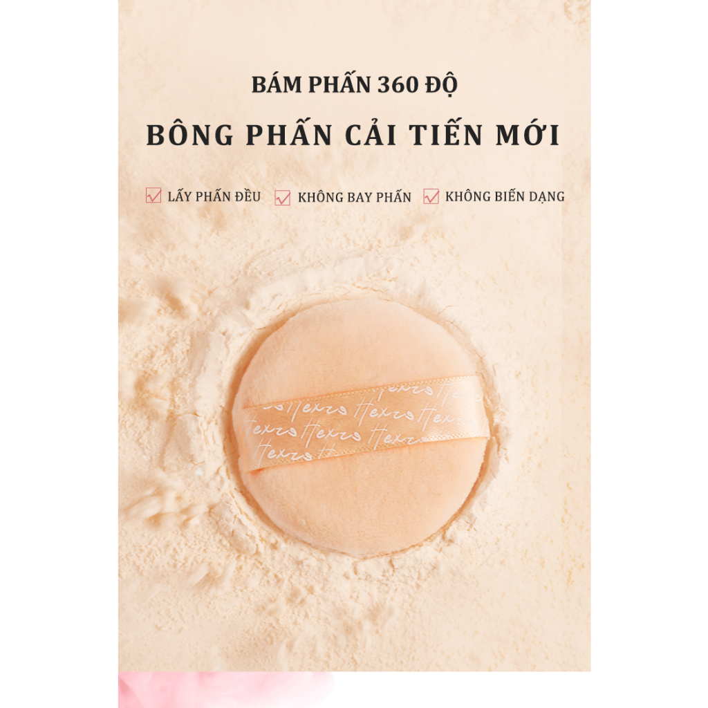 Phấn phủ bột mỏng nhẹ HEXZE 7g, kiềm dầu, chống thấm nước, giữ lớp trang điểm lên tới 12h