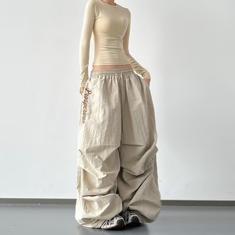 Chunjiamian Quần Baggy thiết kế sang trọng có họa tiết thêu đẹp mắt - Dễ bảo quản và không cần là