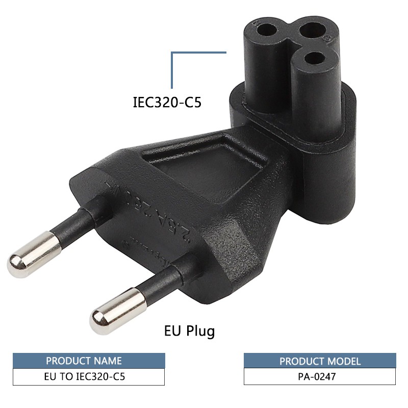 Bộ chuyển đổi phích cắm eu sang 2 chấu Iec 320 C5 lỗ cắm Ac 2.5a