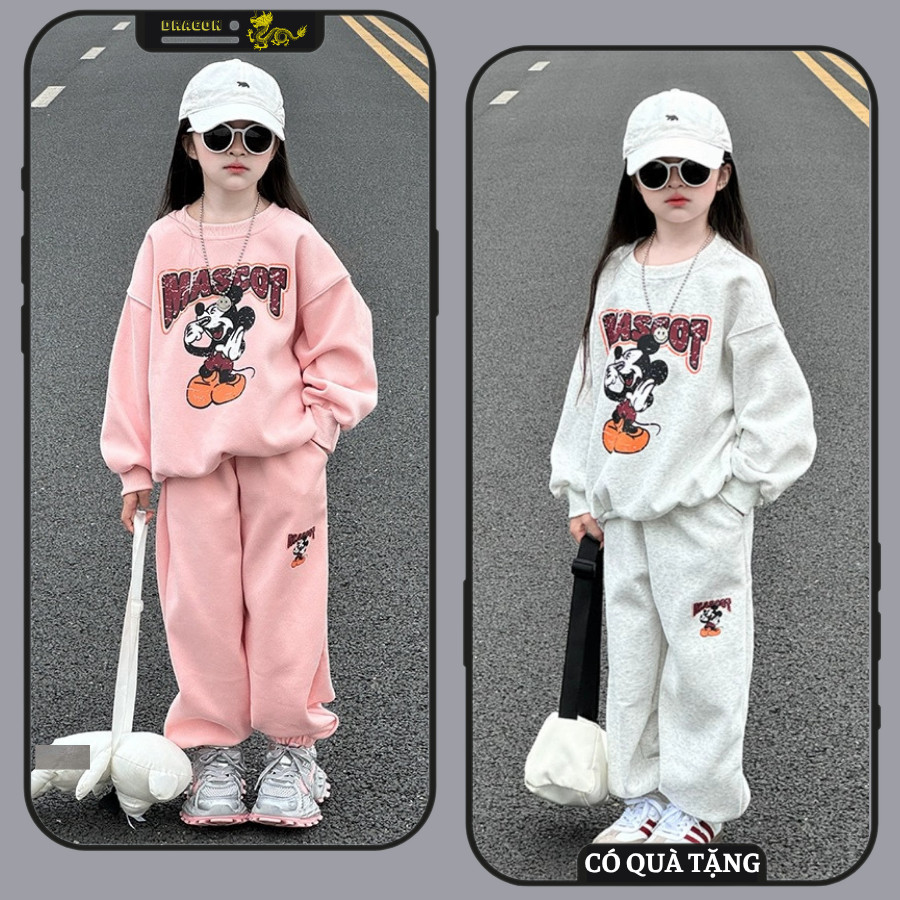 Bộ quần áo thu đông bé gái 14-45kg.Bộ nỉ cho bé gái mẫu MICKEY.Đồ bộ dài tay bé gái. D33