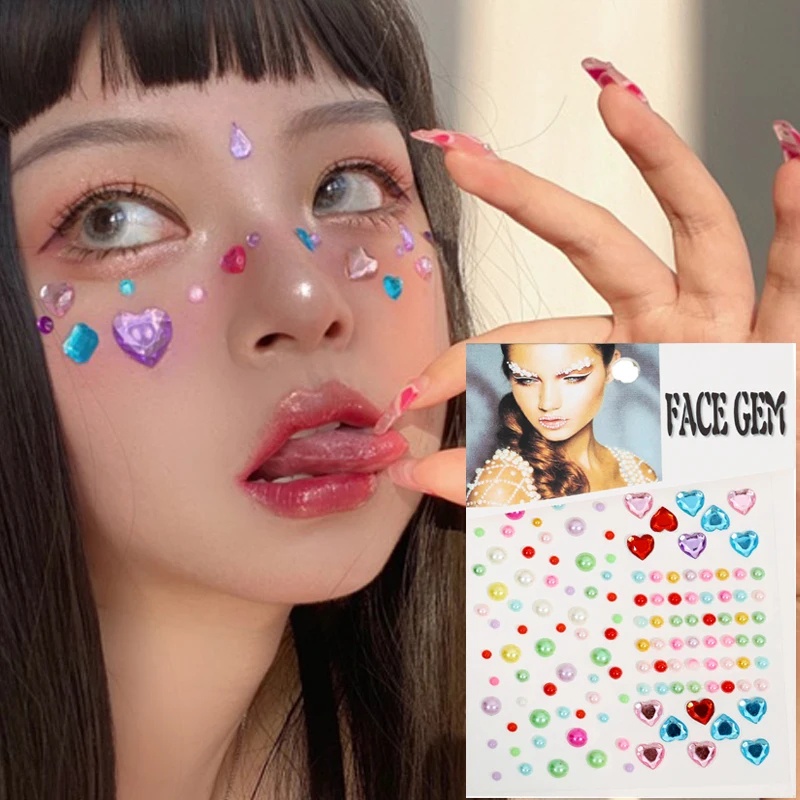 Miếng Dán Trang Trí Mắt Mặt / Lông Mày / Cơ Thể Tự Dính Đính Đá Giả Kim Cương 3d Nhiều Màu Sắc