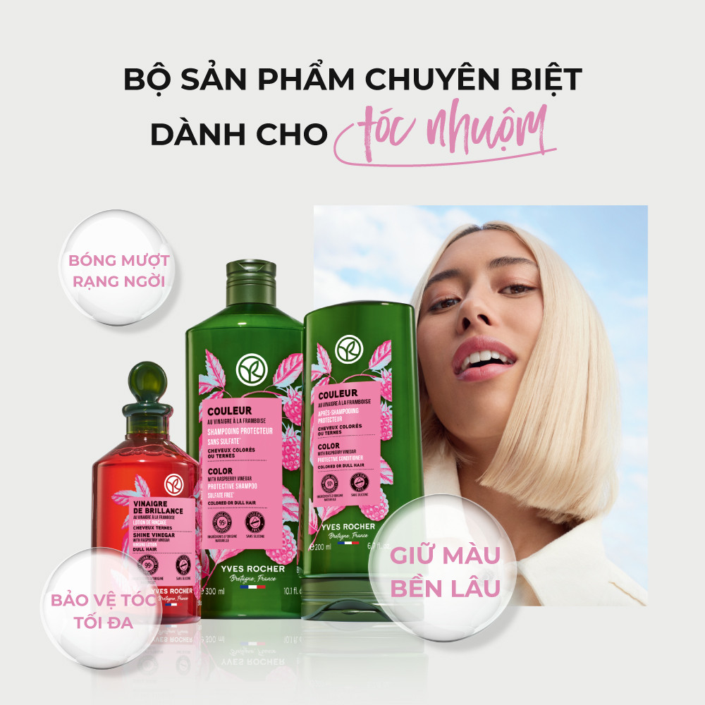 Dầu gội giữ màu tóc nhuộm và giúp tóc bóng mượt Yves Rocher Shine Protective Shampoo 300ml