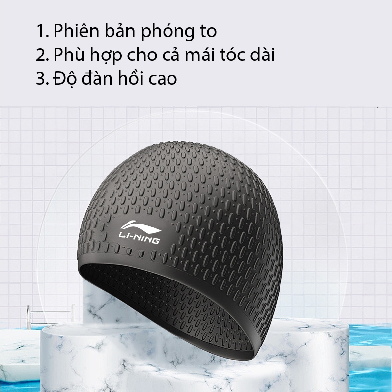 Mũ Bơi LI-NING 3D Silicon Giọt Nước Chống Nước Che Tai Mũ Bơi Chống Thấm Nước Mũ Bơi Chống Nước