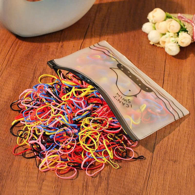 SET 1000 Thun Cột Tóc , Dây Chun Buộc Tóc Co Giãn Dùng Một Lần Không Đau Không Gãy Tóc Cho Bé