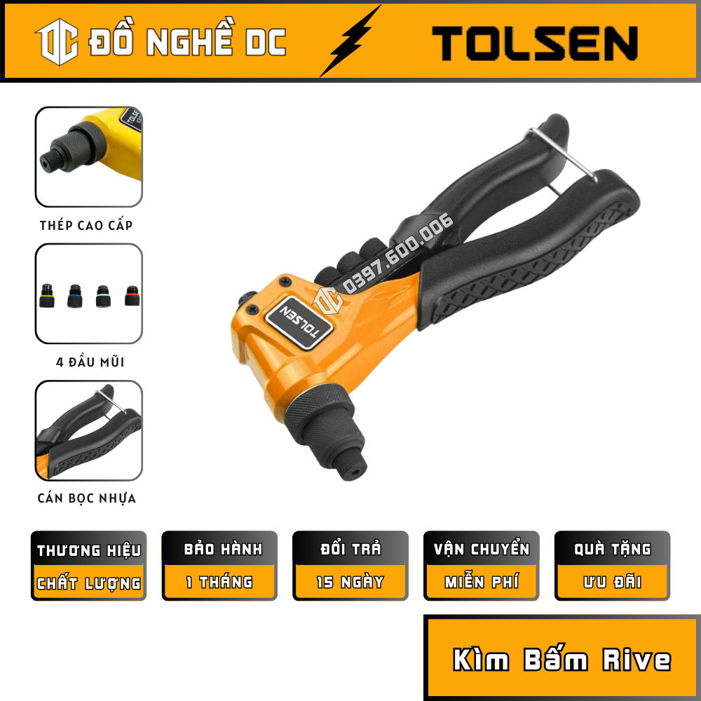 Kìm Bấm Rive (Nhôm, Sắt, Inox) 190mm, Kìm Rút Đinh Cao Cấp 43099 Tolsen Thép Cao Cấp Dùng Để Bấm Chết, Kẹp, Giữ SG