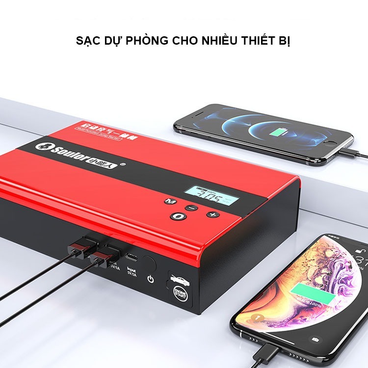 Kích bình thông minh Soulor 4IN 1, kích bình, bơm hơi, đèn pin, đèn sos, sạc điện thoại