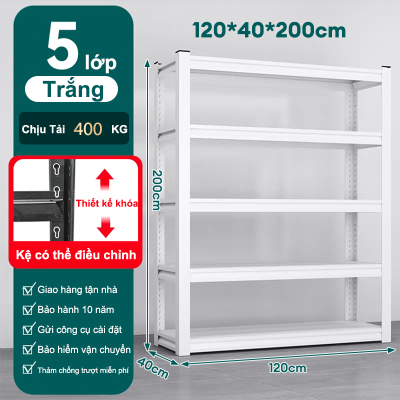 Kệ Sắt 5 Tầng 120*40*200cm Không cần vít gắn Kệ để đồ Kệ sắt đựng đồ Có thể chịu được 600kg