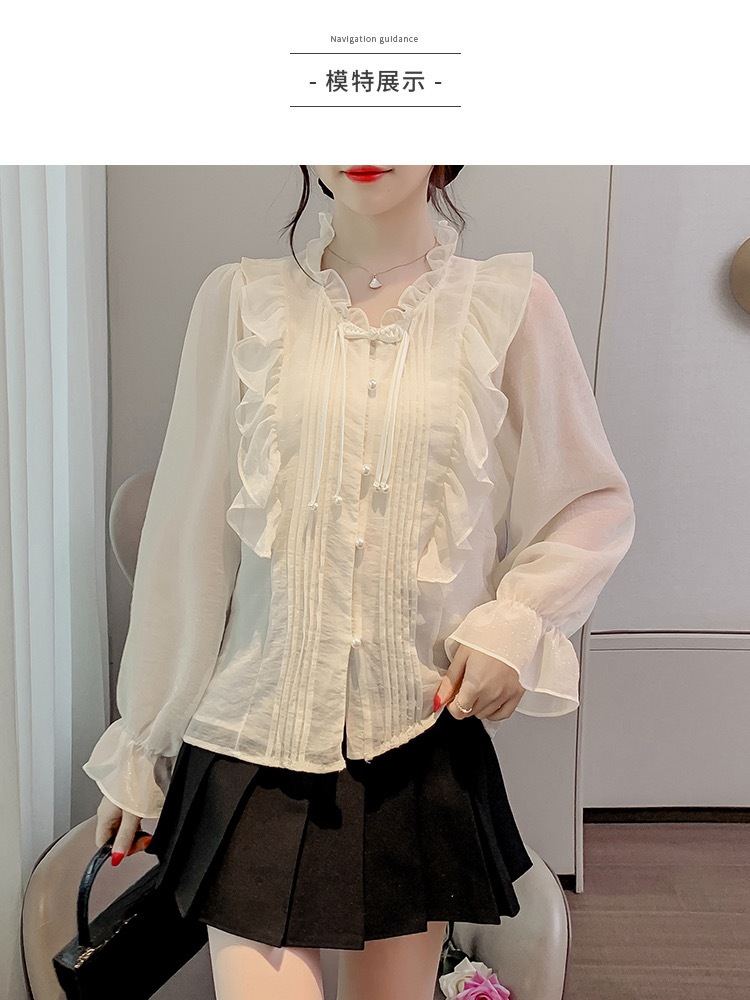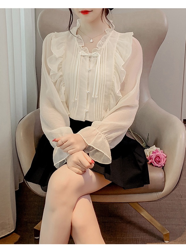 Áo Sơ Mi Nữ Trắng Be Cổ Viền Bèo Dài Tay Phong Cách Tiểu Thư Bánh Bèo Điệu Đà