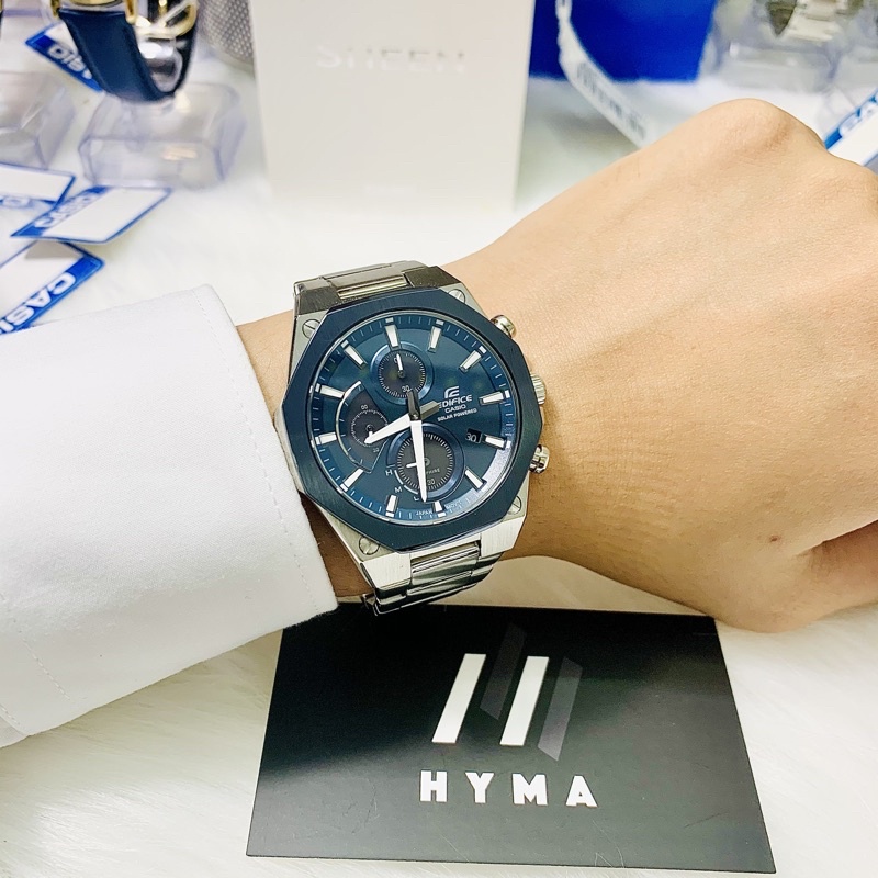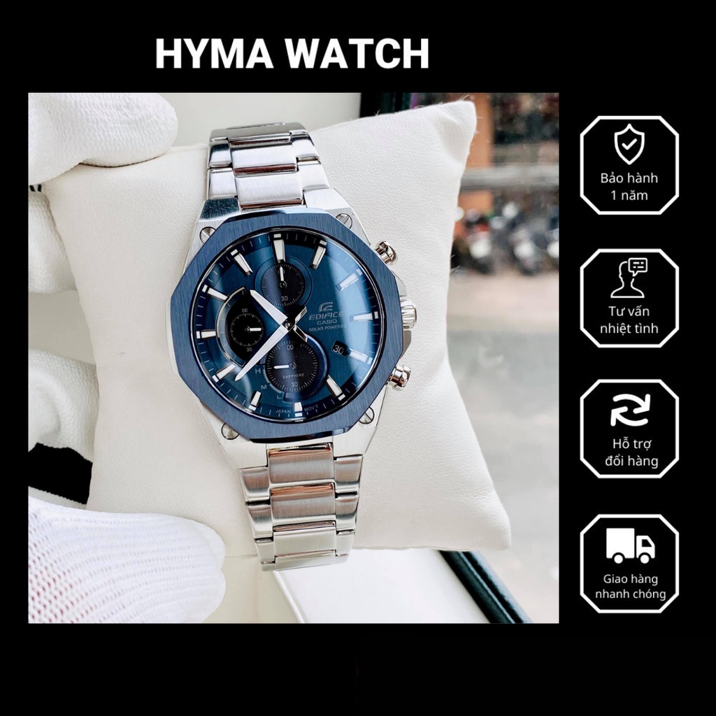 Đồng hồ nam chạy năng lượng mặt trời chính hãng Casio Edifice EFS S570DB-2A Dây thép mặt xanh Bảo hành 5 năm Hyma watch