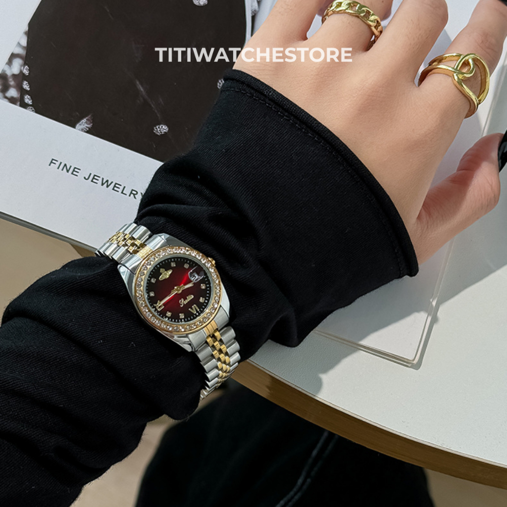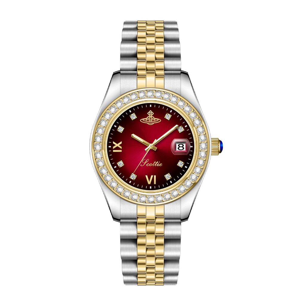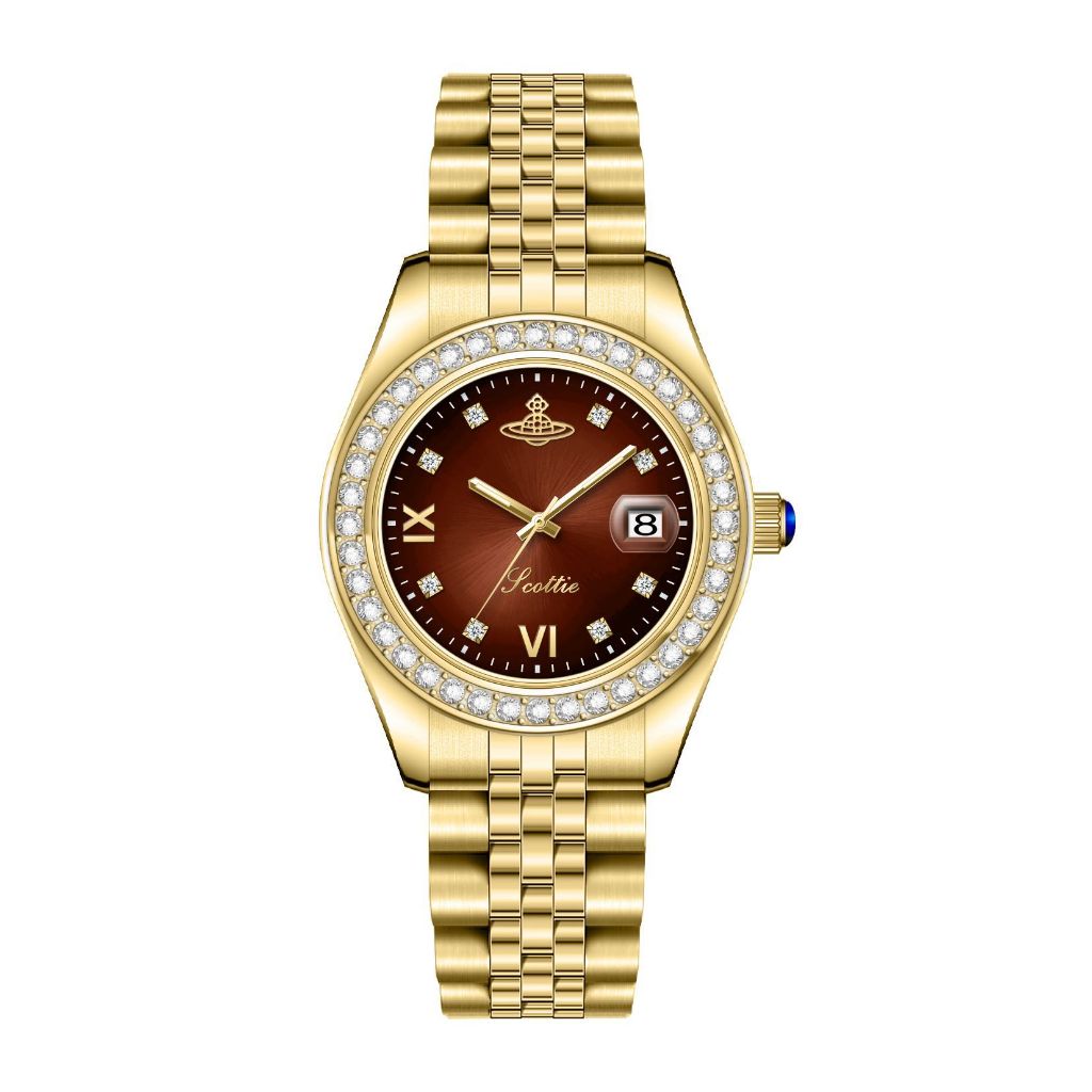 Đồng hồ đeo tay nữ Scottie chính hãng, Size mặt 28mm,viền đính đá sang trọng dành cho nữ