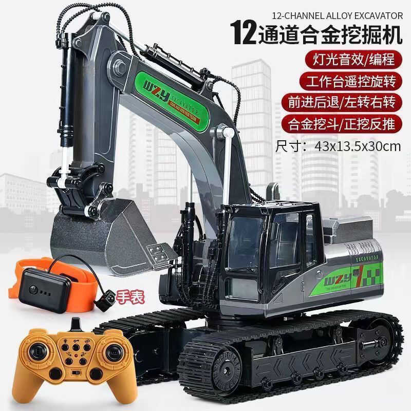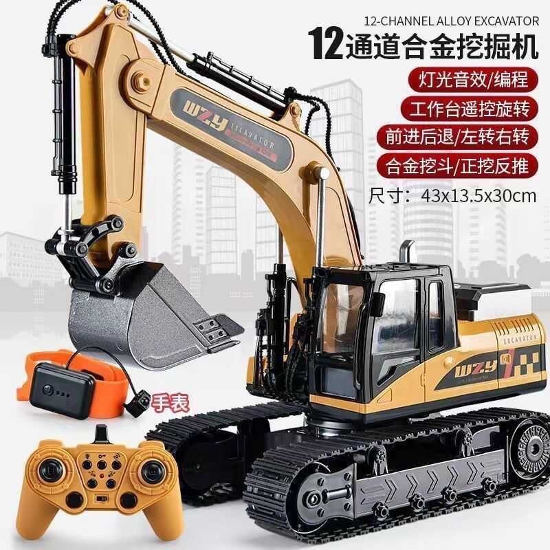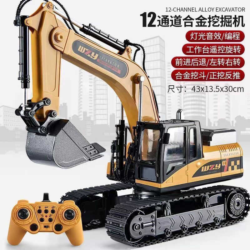 Hợp kim điều khiển từ xa máy xúc đồ chơi trẻ em xe cộng với kích thước không dây điện mô phỏng máy xúc c