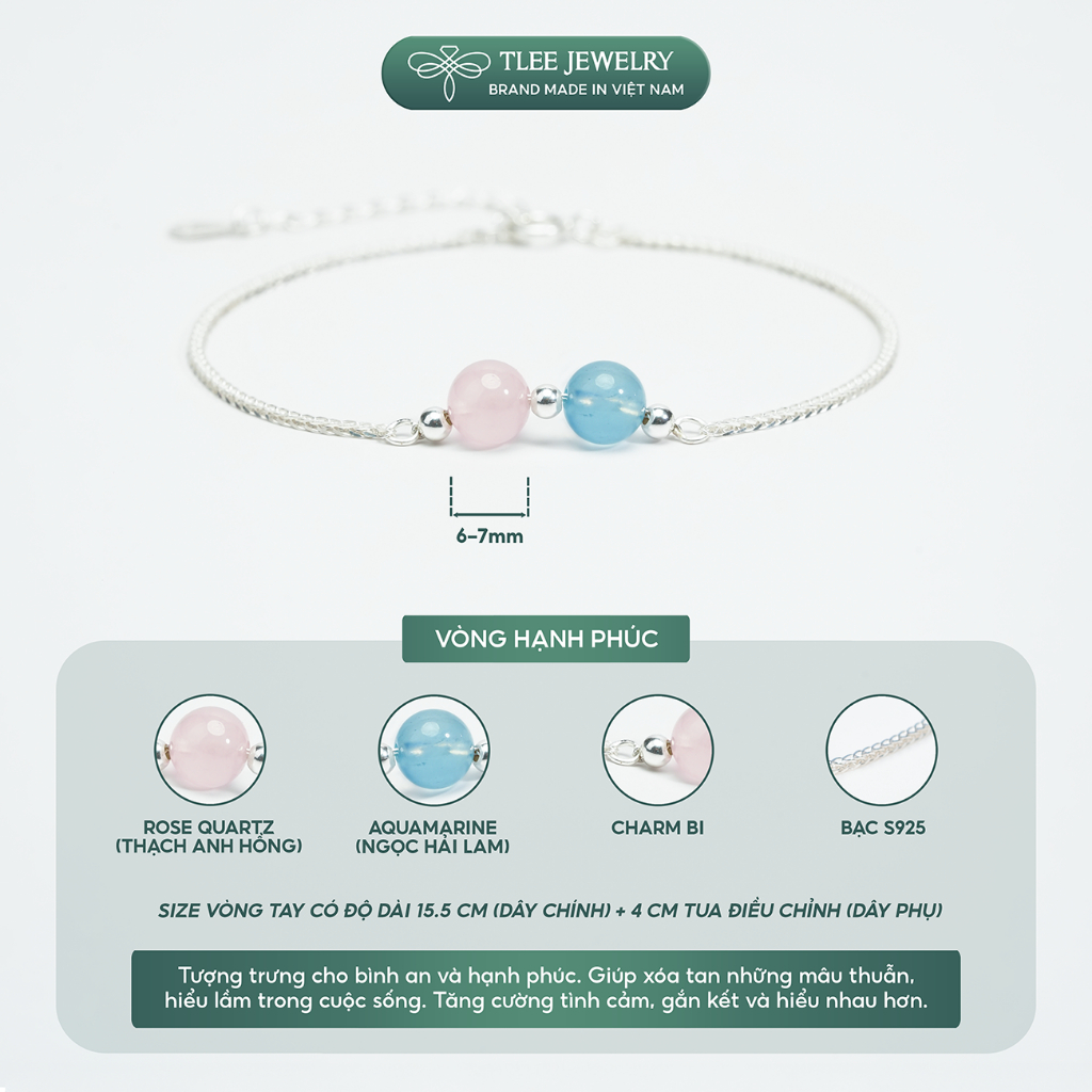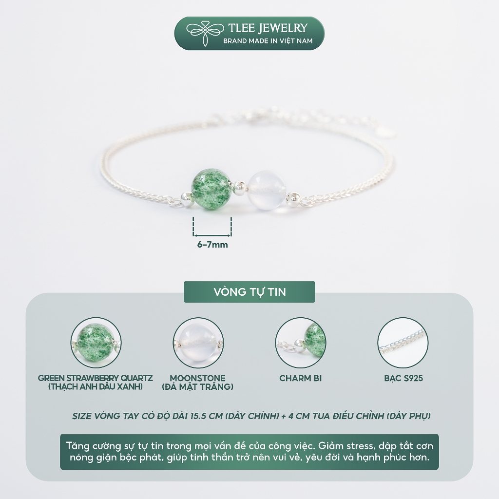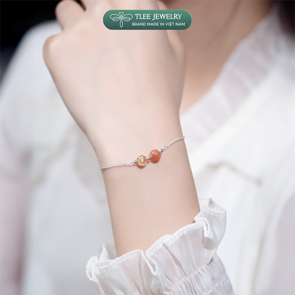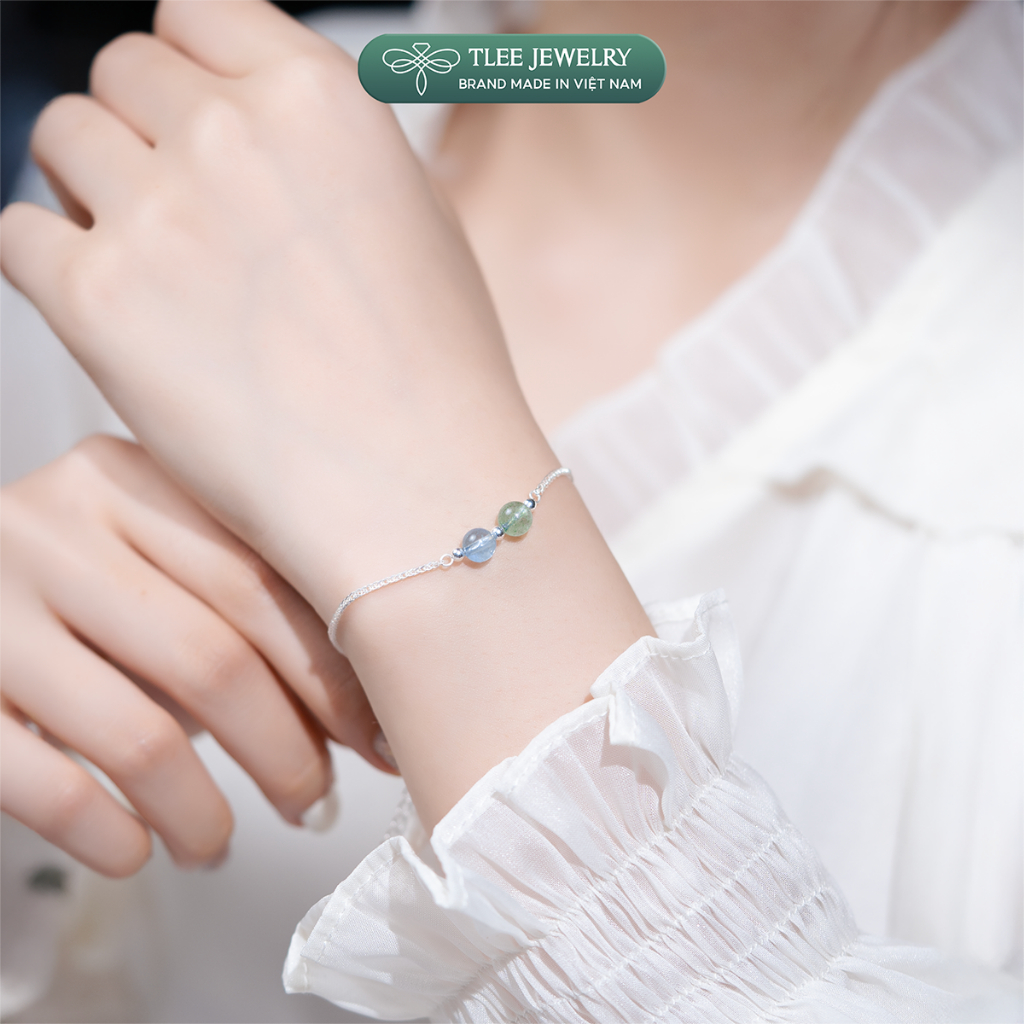 Vòng tay bạc nữ TLEE bạc 925 mix hai hạt đá phong thủy Tự Nhiên và charm bi bóng TLEE JEWELRY LT0211