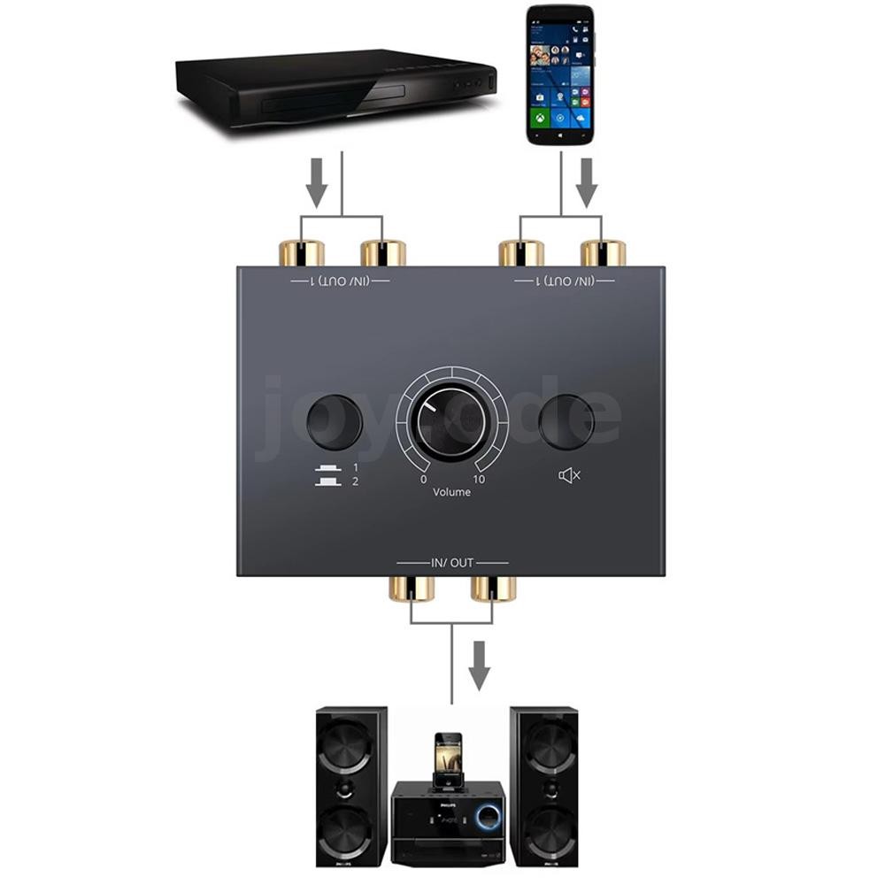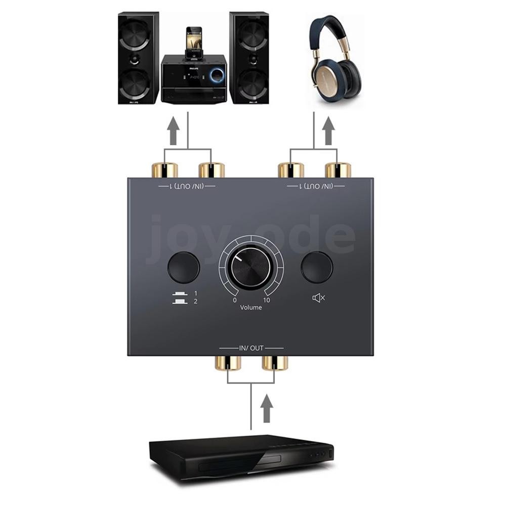 Bộ chuyển đổi hai chiều âm thanh nổi RCA có nút tắt tiếng 2X1 / 1X2 Bộ chia công tắc âm thanh nổi L / R di động