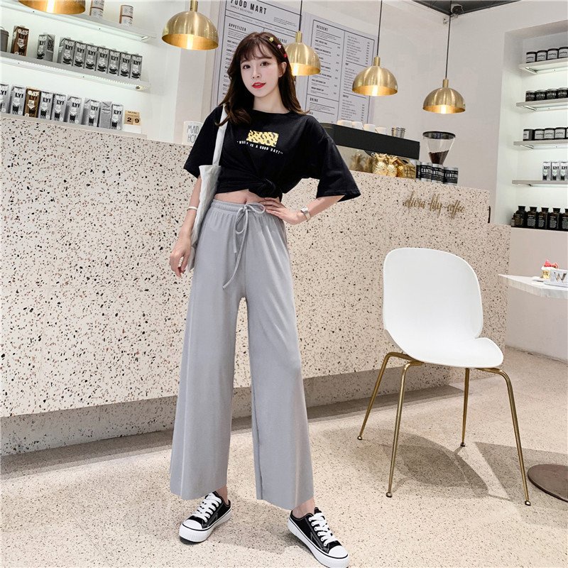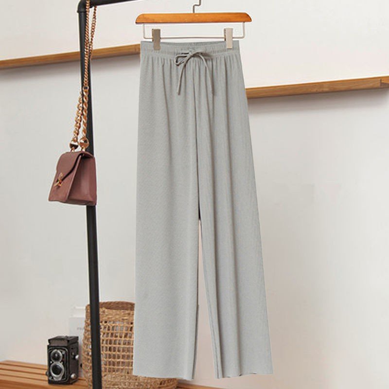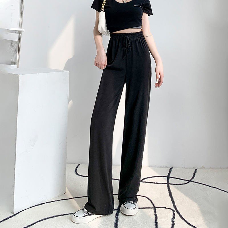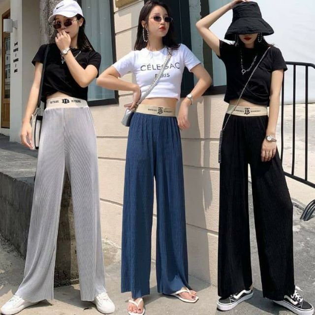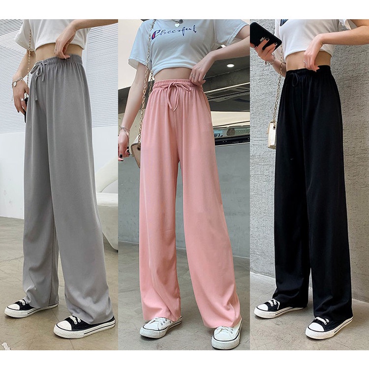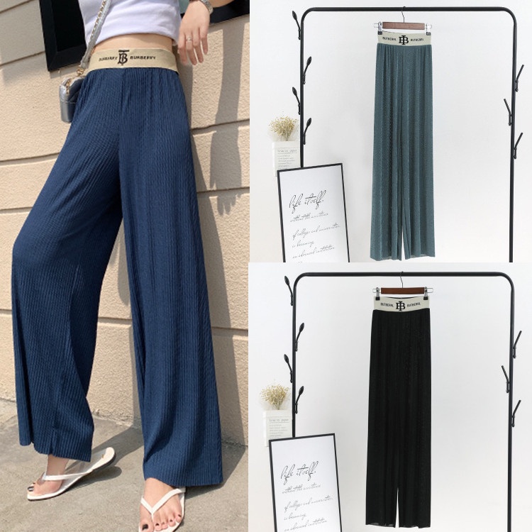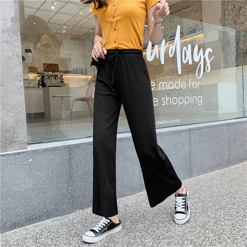 Quần Thun Co Giản 4 Chiều, Quần Bảng Lưng Cao, Ống Rộng, Quần Cột Nơ, Thời Trang Nữ