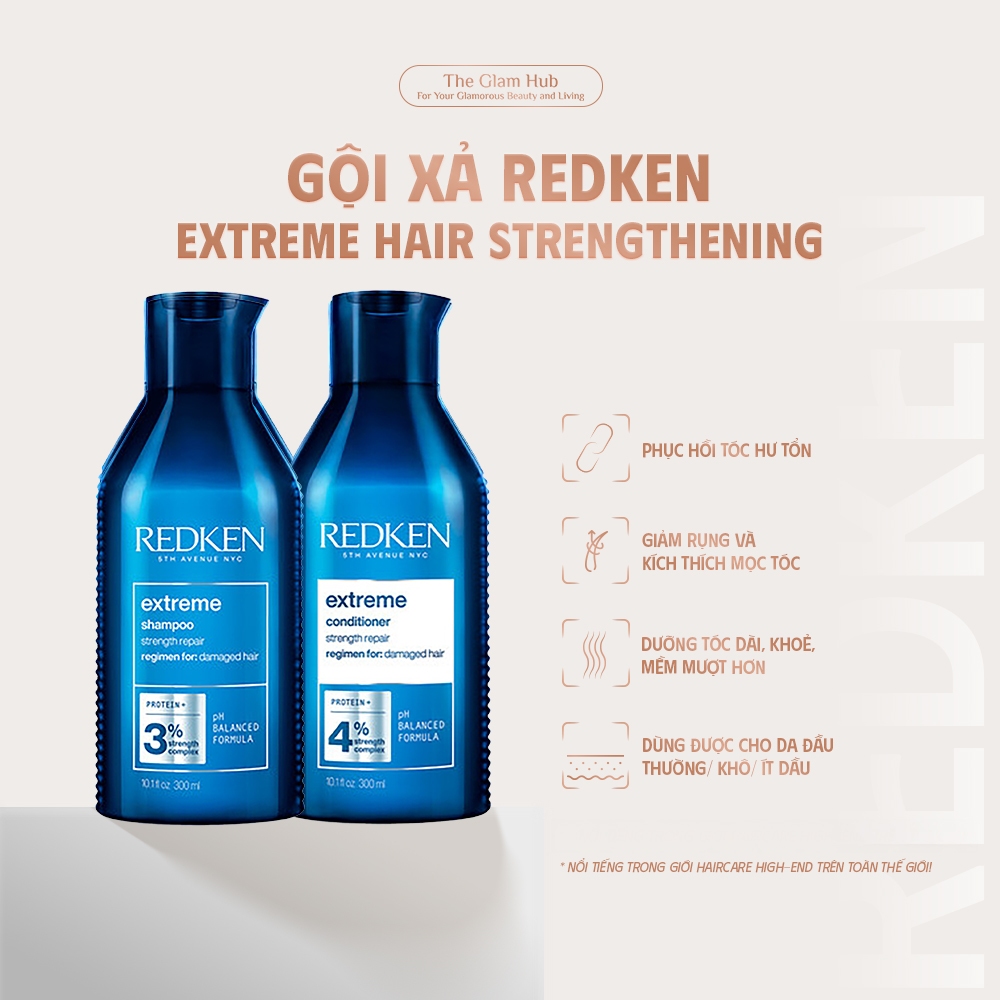 Cặp Gội Xả Cho Tóc Hư Tổn, Nuôi Dài Tóc, Thân Tóc Khoẻ REDKEN Extreme Hair Strengthening Shampoo For Damaged Hair