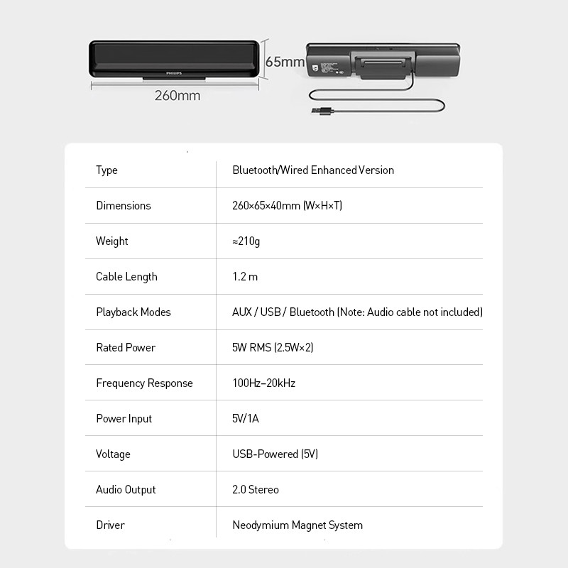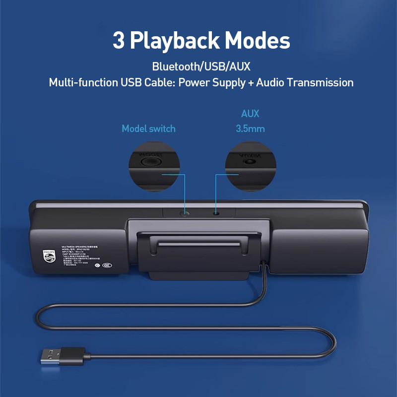 Philips SPA2100 laptop Loa Nhỏ Di Động Kẹp USB Hai Chế Độ Để Bàn Có Dây Bluetooth