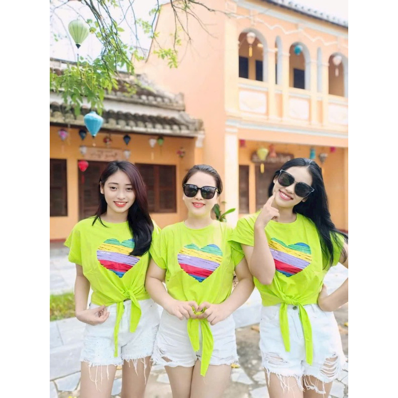Áo phông nữ,áo đội nhóm,áo du lịch thể thao dân vũ,chất mát lịm in hình trái tim xinh