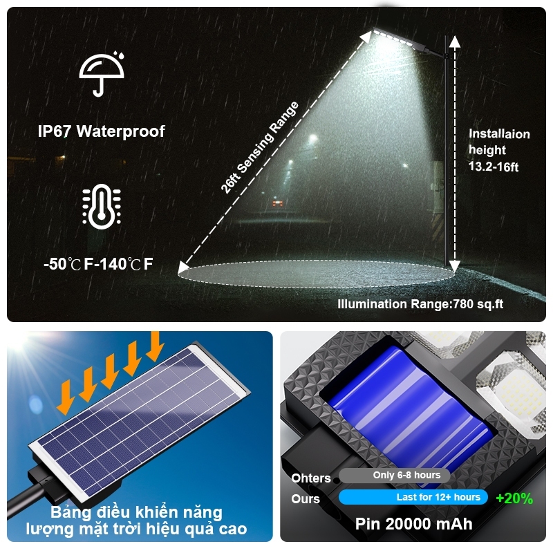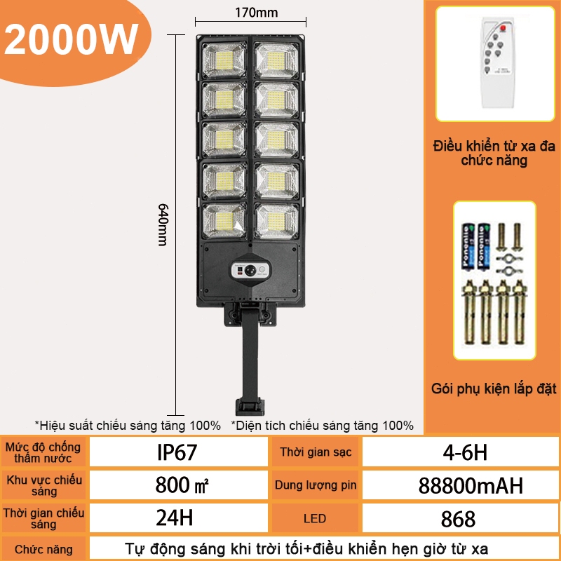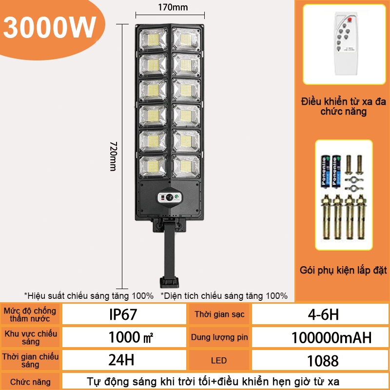 OOKAS Đèn Năng Lượng Mặt Trời 3000W cảm ứng chống nước LED