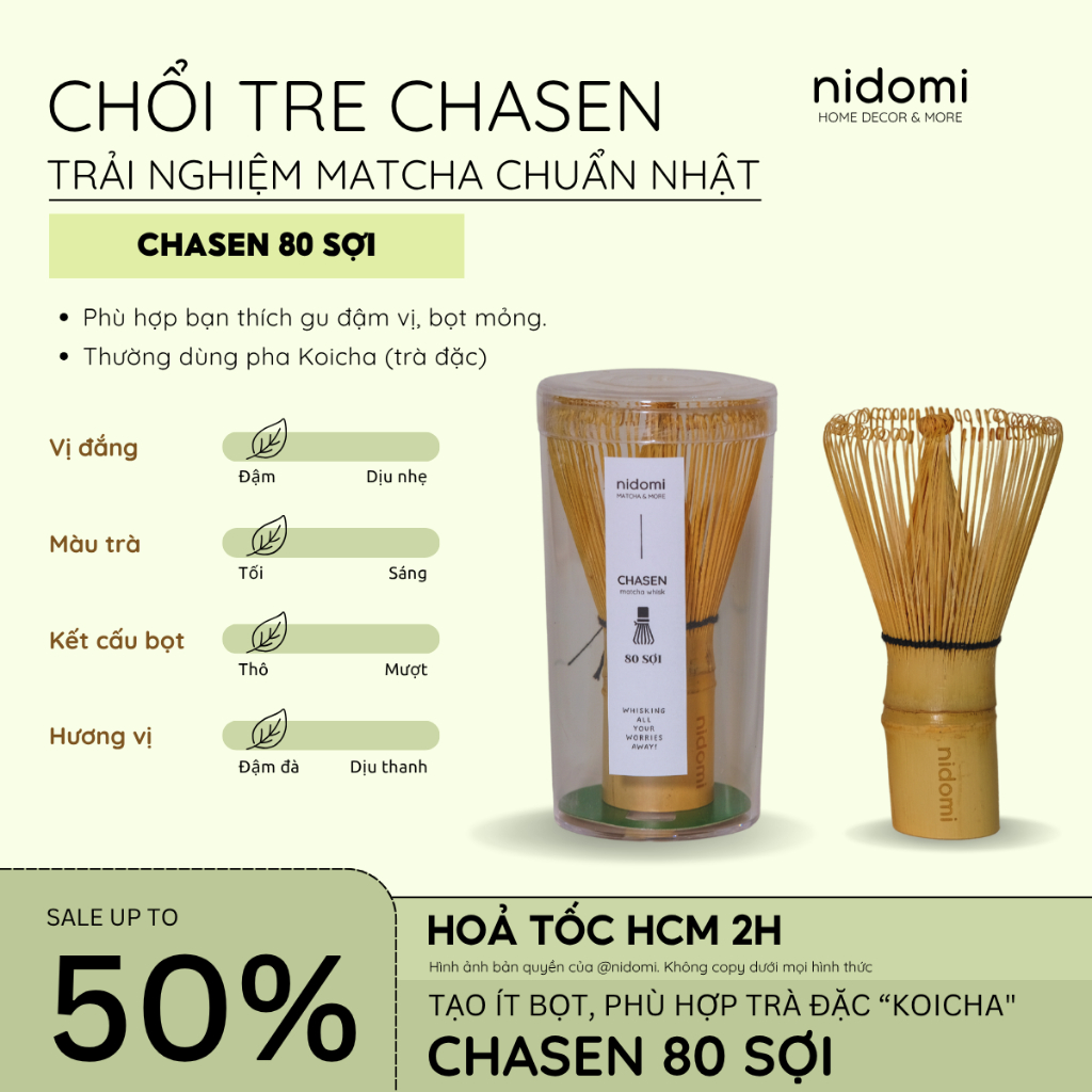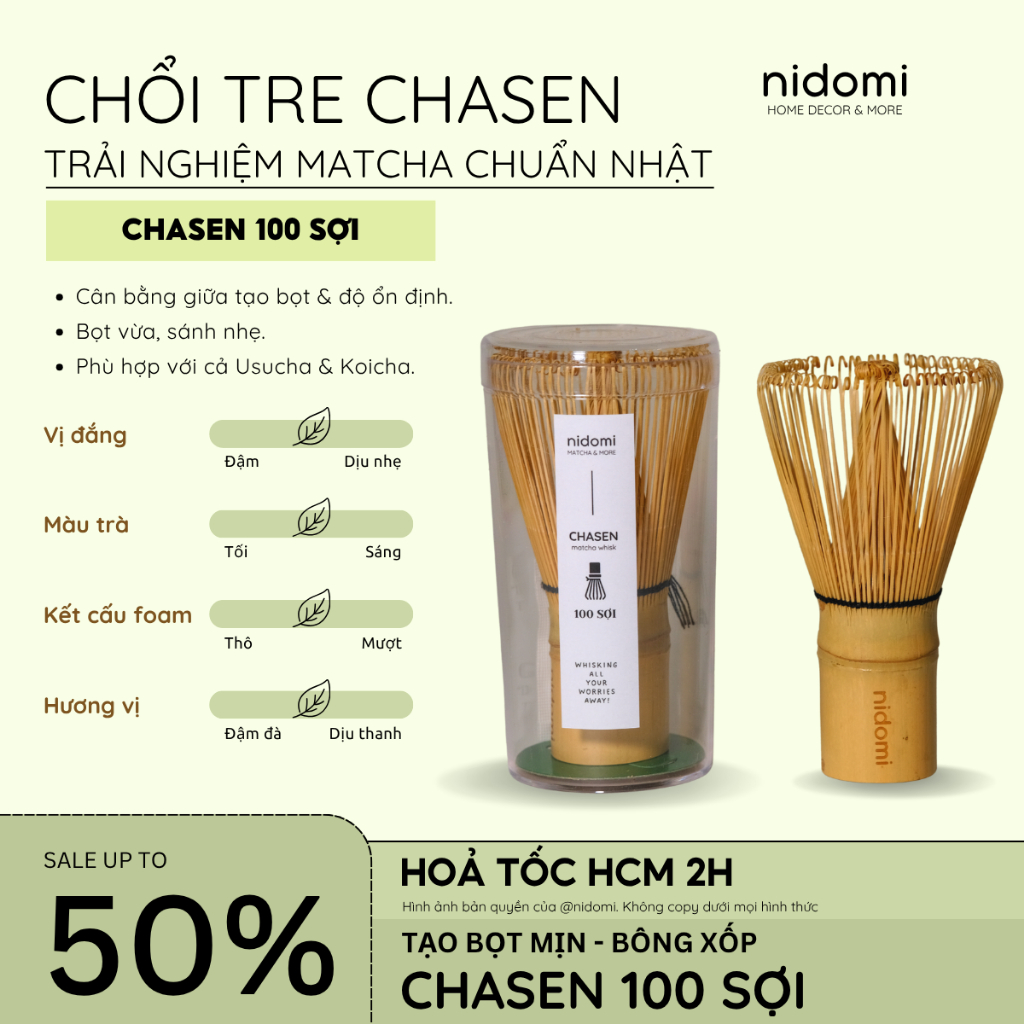 |Nidomi| Chổi Chasen đánh Matcha cao cấp 120 Đan & làm bằng Tre Tự Nhiên