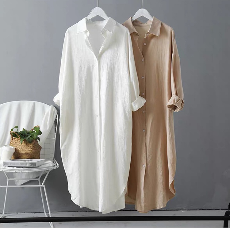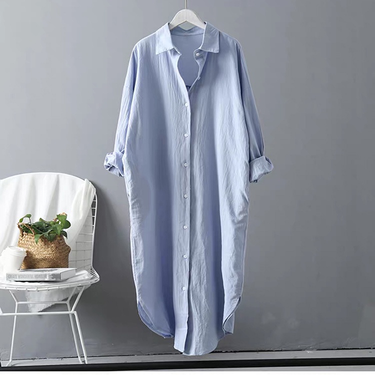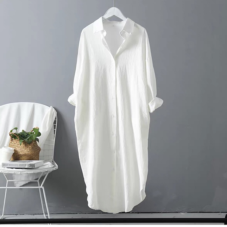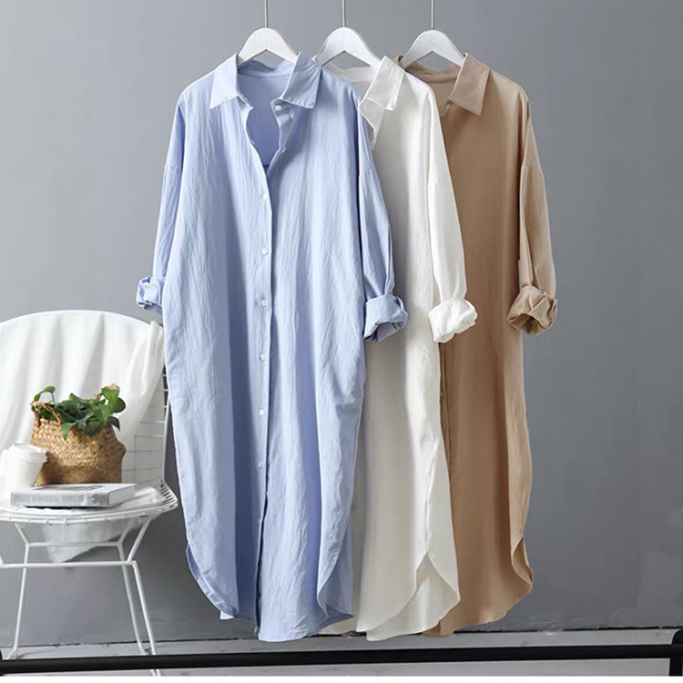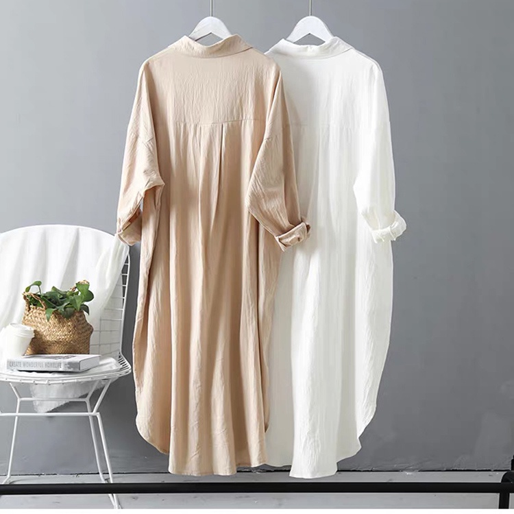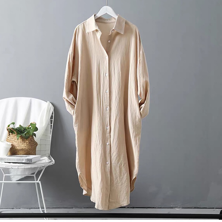 Đầm sơ mi dài dáng suông chất đũi SLINEN, form váy suông không kén dáng.