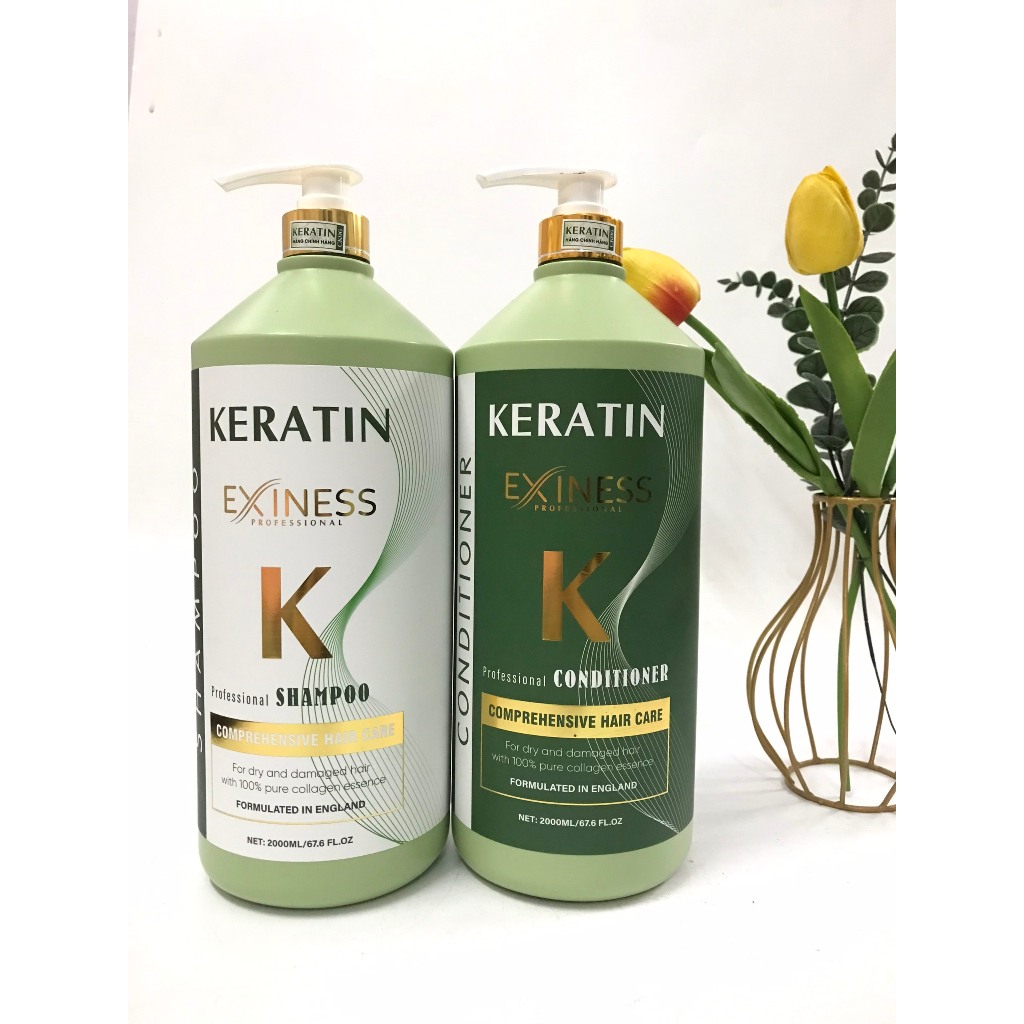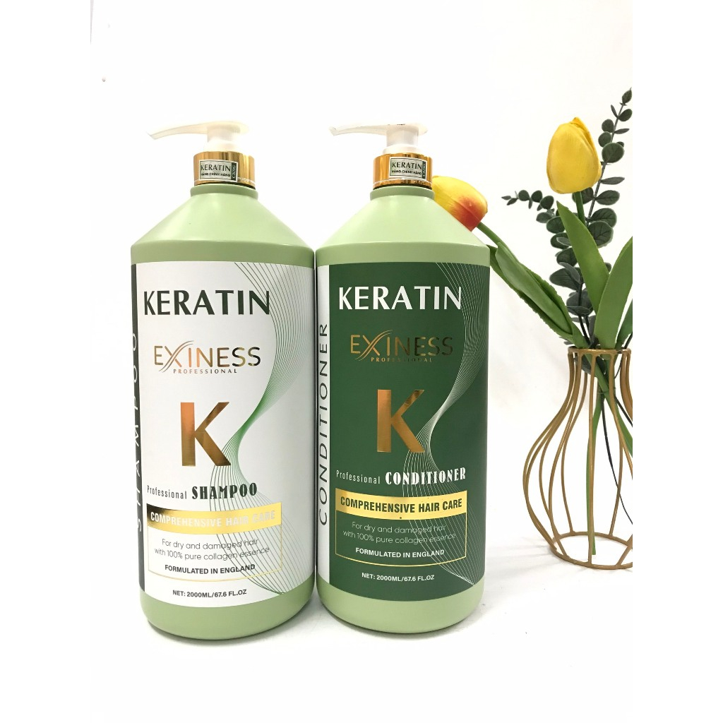 Dầu gội xả Keratin EXINESS K 2000ml Hương thơm nước hoa mềm mượt dung tích lớn siêu tiết kiệm