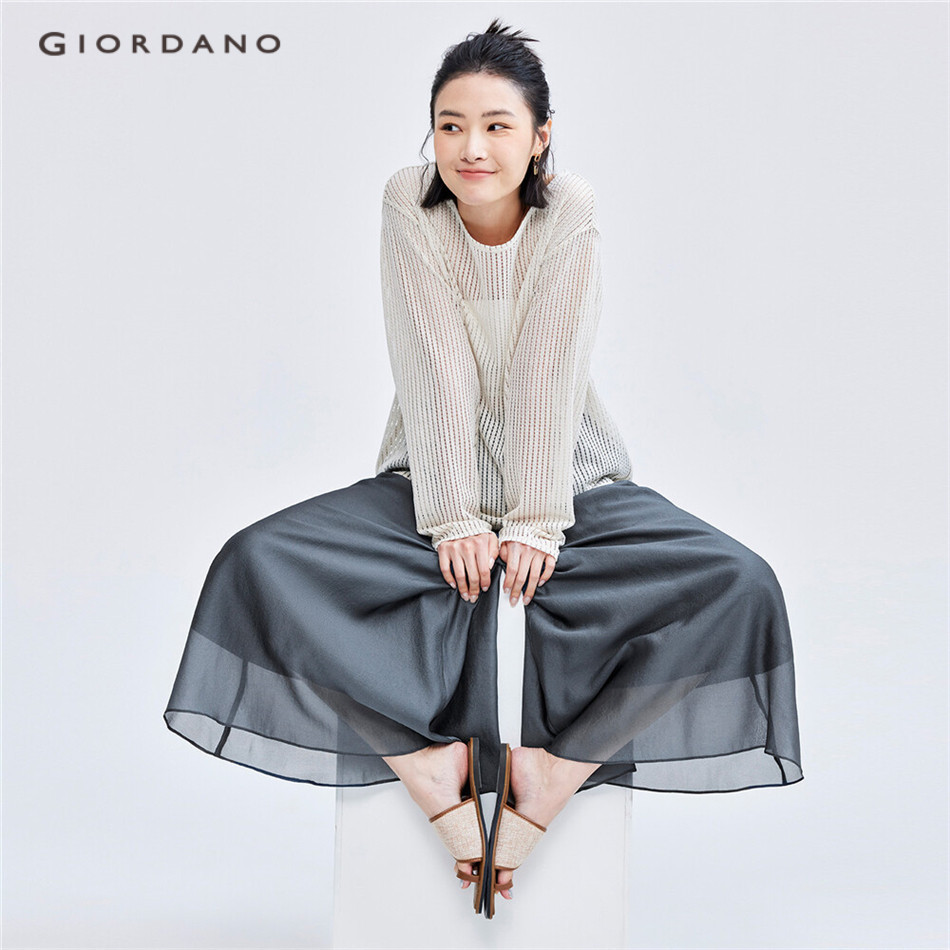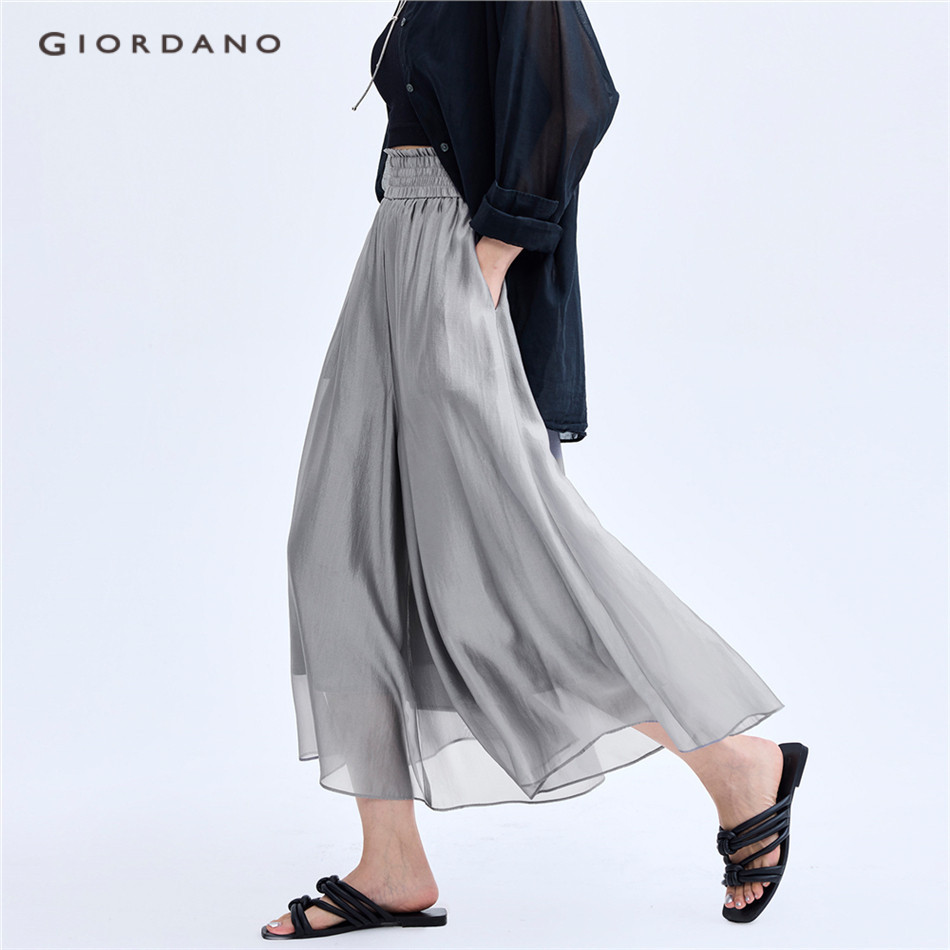GIORDANO WOMEN Shimmer elastic waist wide leg crop pants 18424903