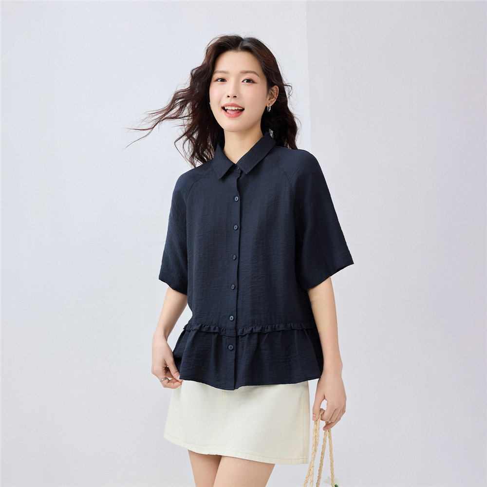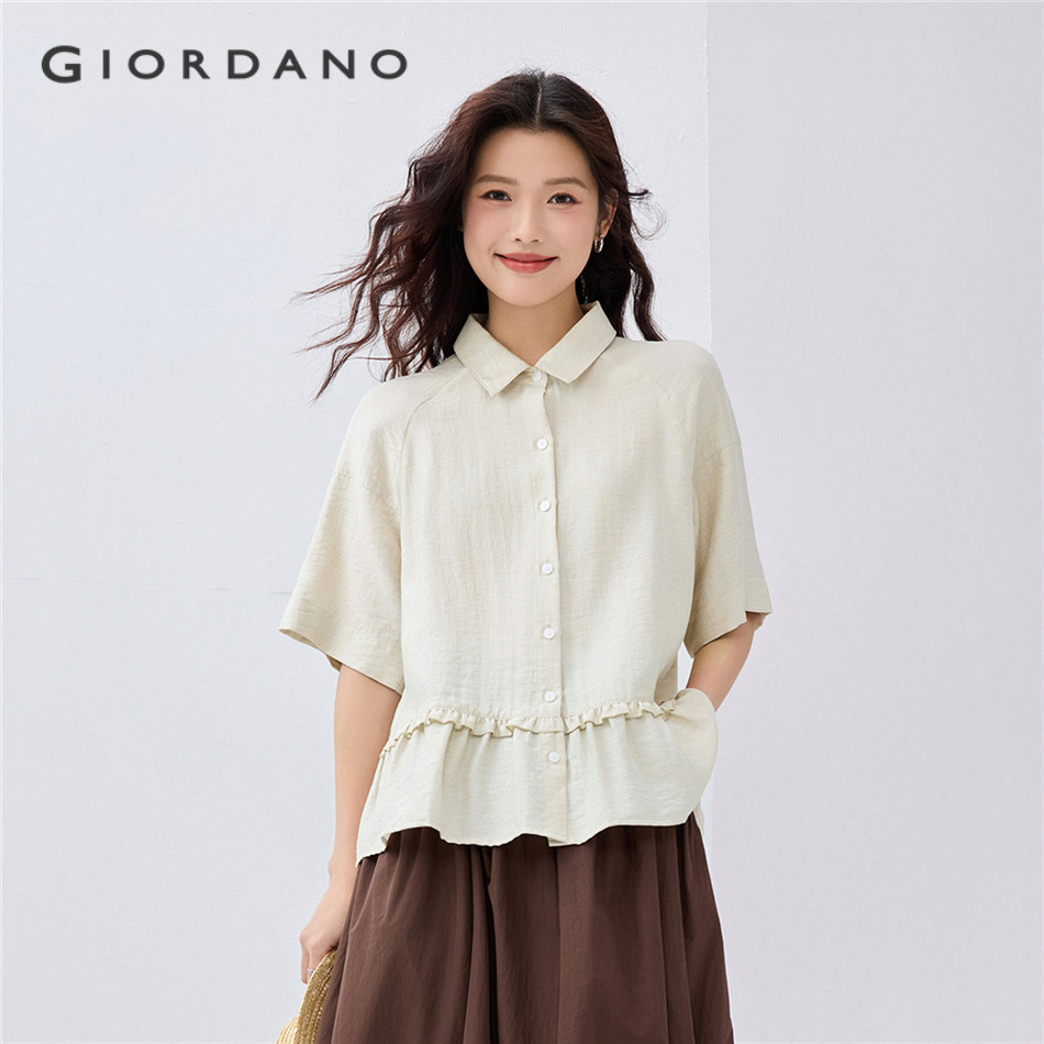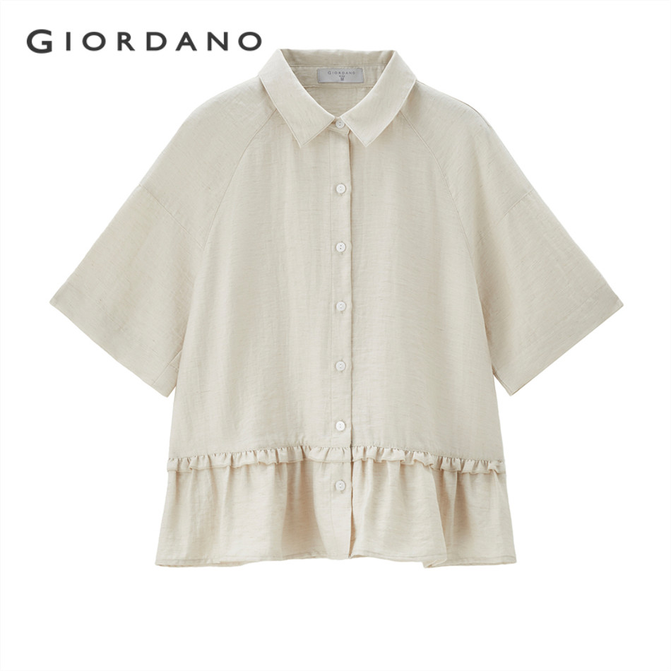 GIORDANO WOMEN Ruffle hem raglan sleeve shirt 13345317