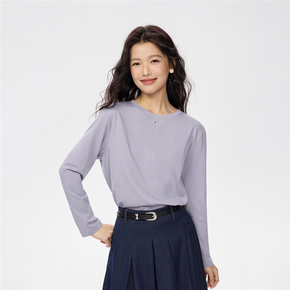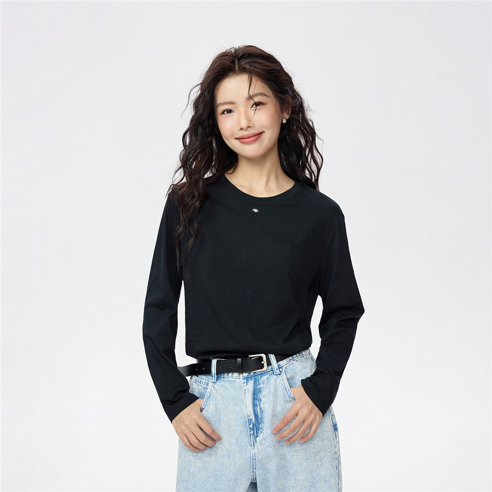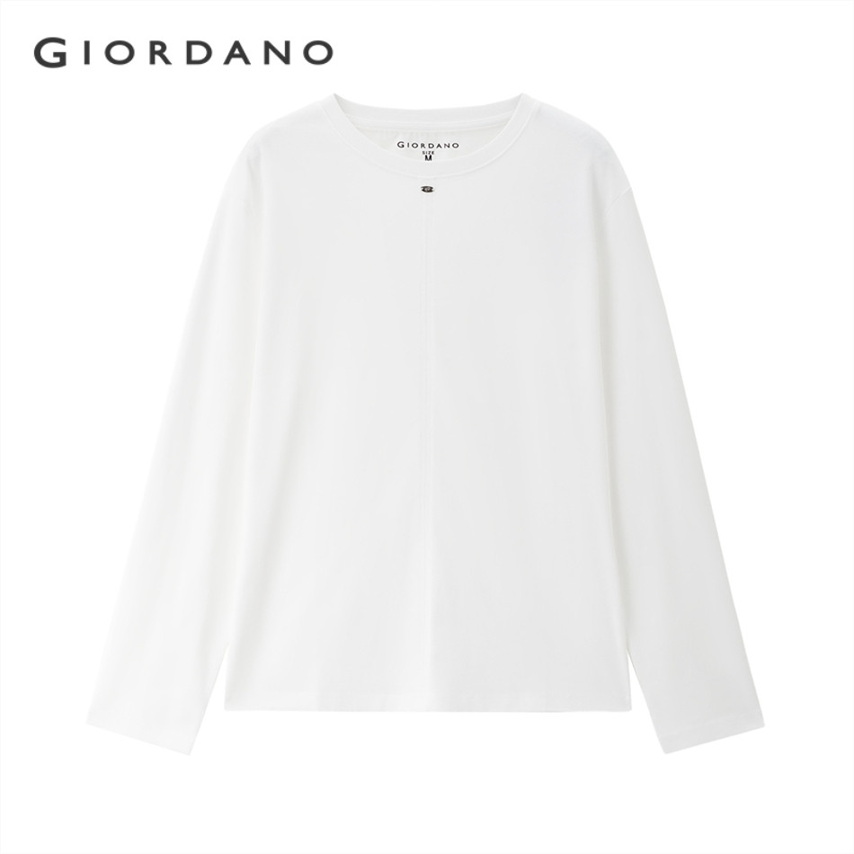 GIORDANO WOMEN 100% Cotton exposed seam long sleeve tee 13325785