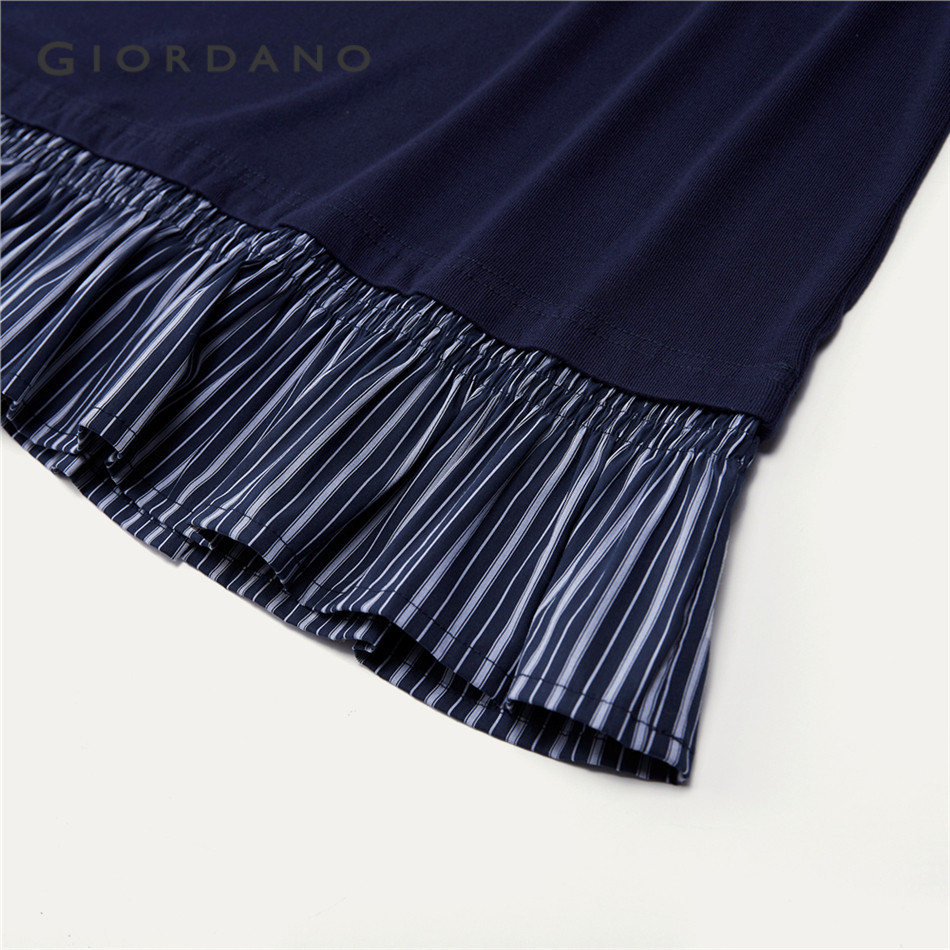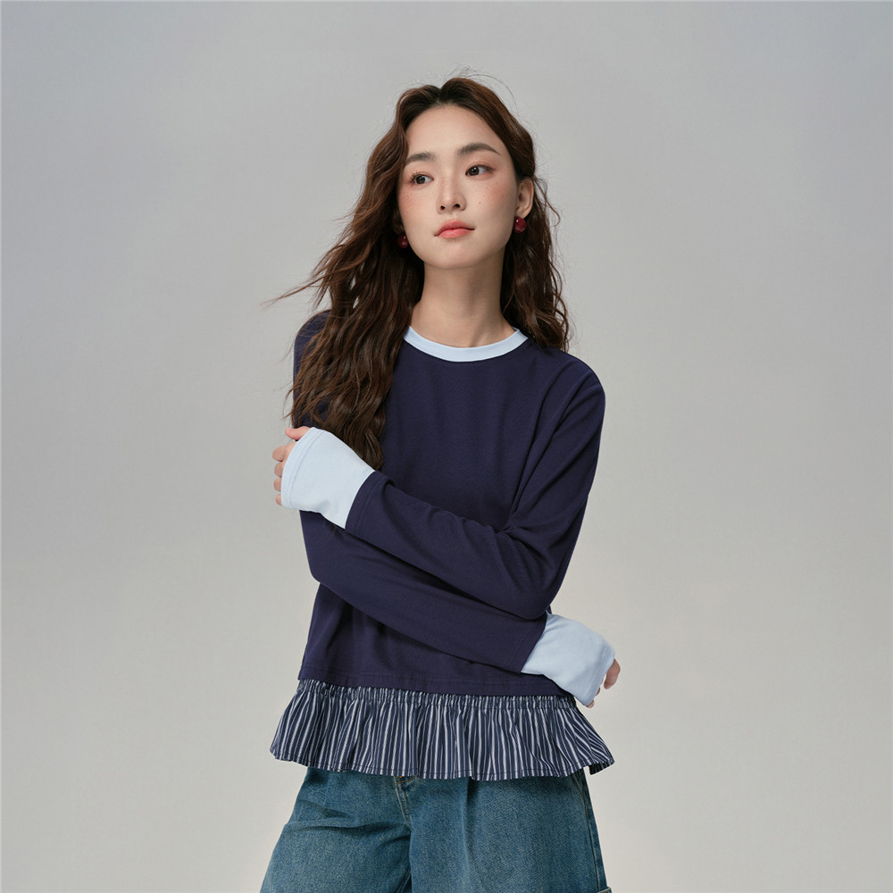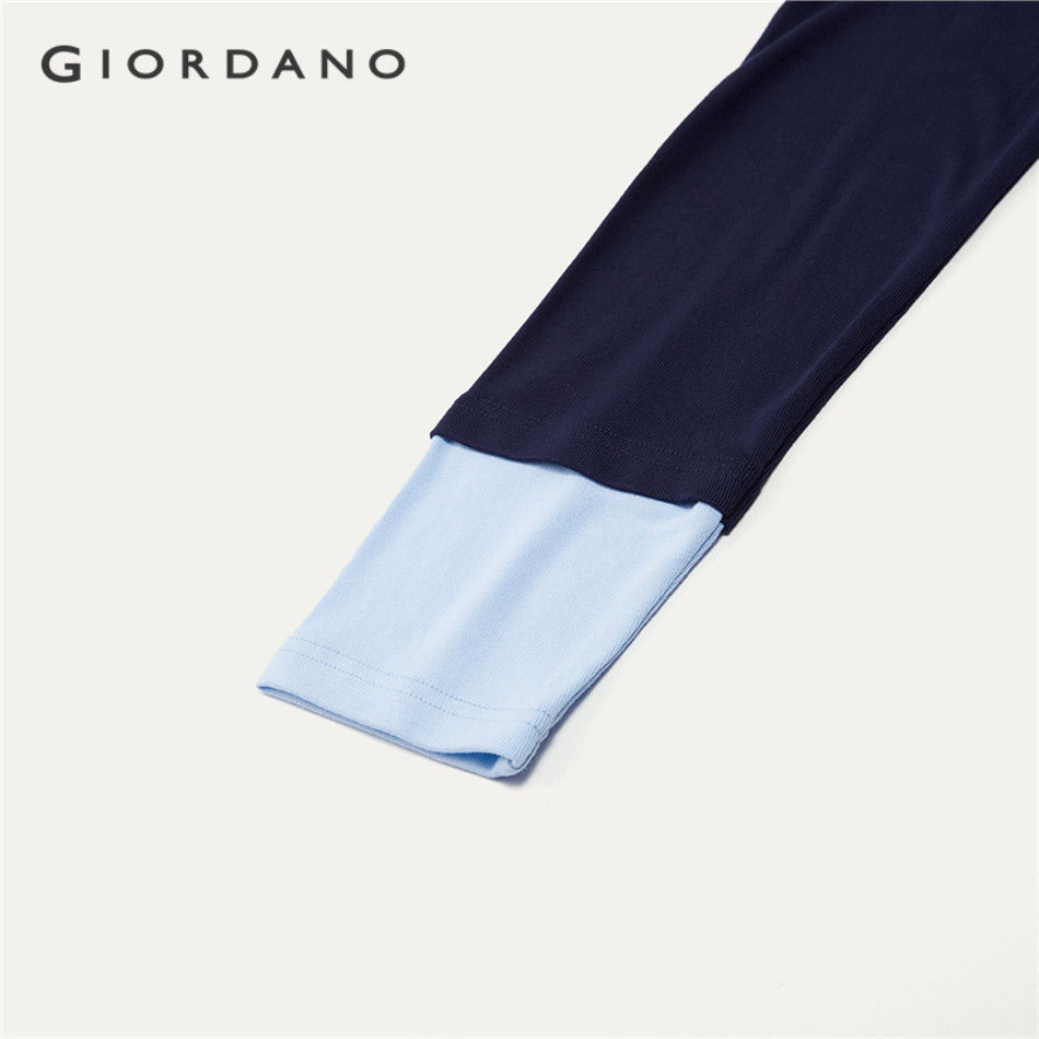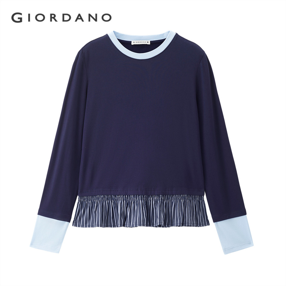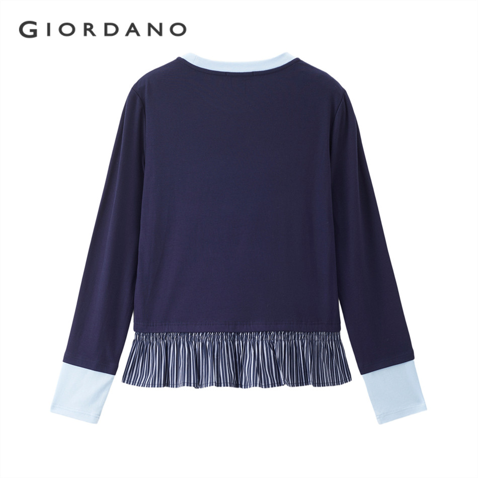 GIORDANO WOMEN Fake 2-piece stripe hem long sleeve tee 18325818