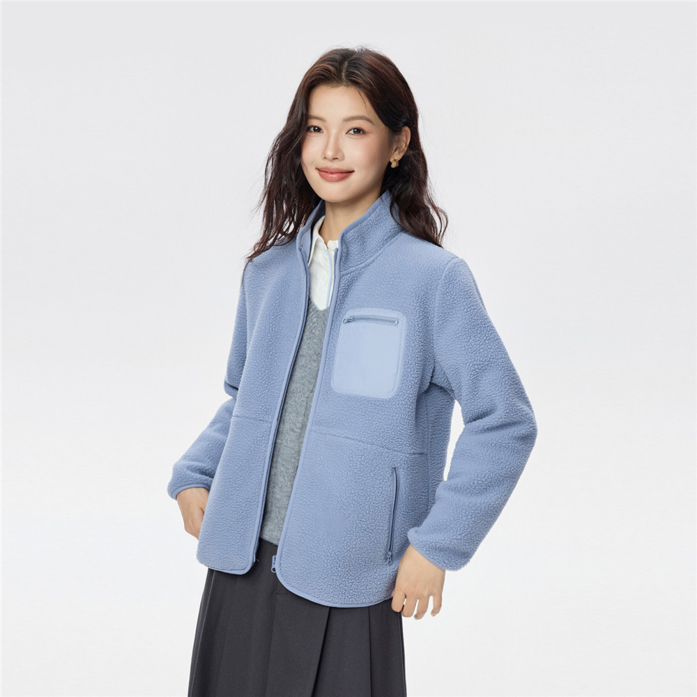 GIORDANO WOMEN Berber fleece patch pocket stand collar jacket 13375781