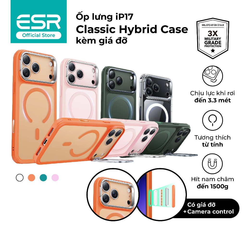 Ốp lưng ESR Classic Hybrid Case kèm giá đỡ HaloLock cho iP17 series đạt tiêu chuẩn quân đội
